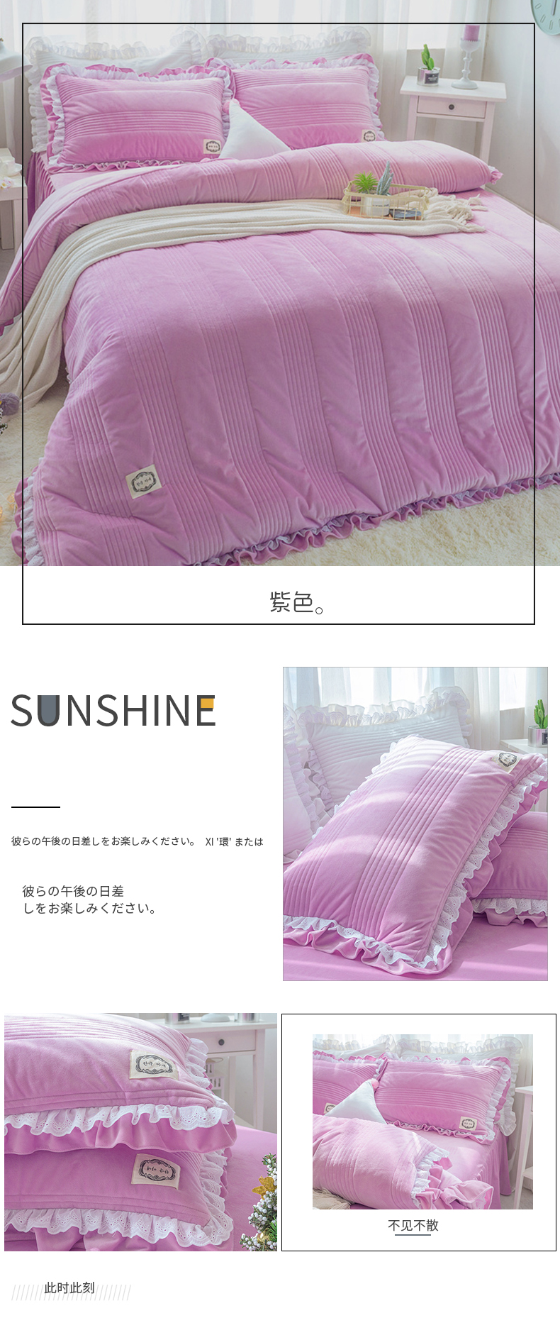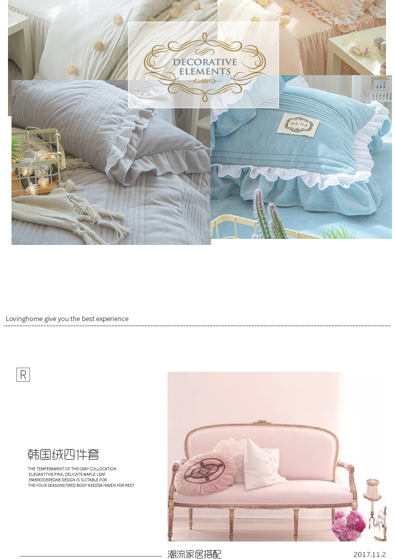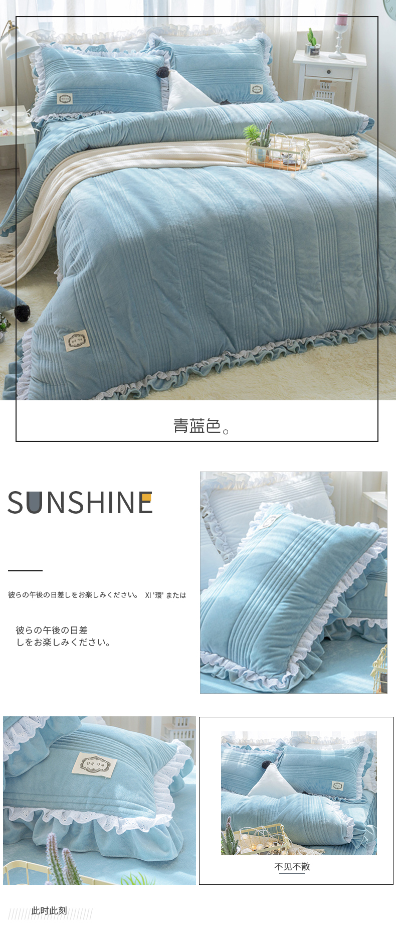 商品名称:韩国短绒水晶四件套秋冬保暖绗缝夹棉被套床裙款浪漫满屋系列6色