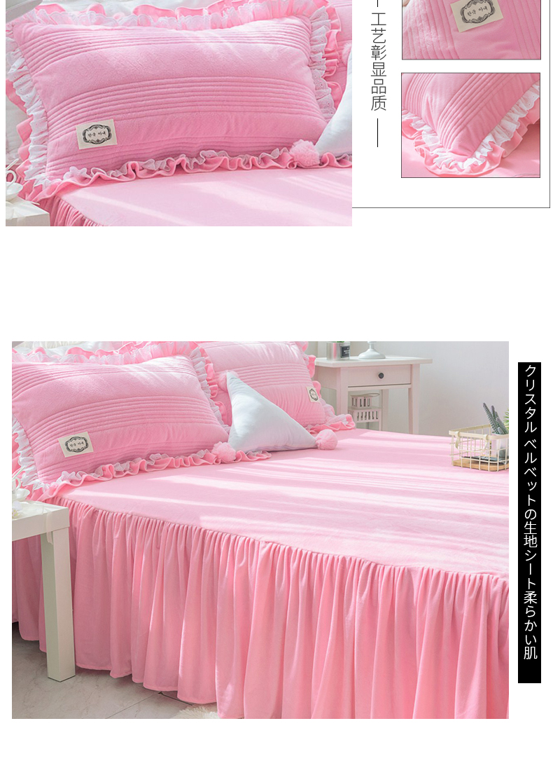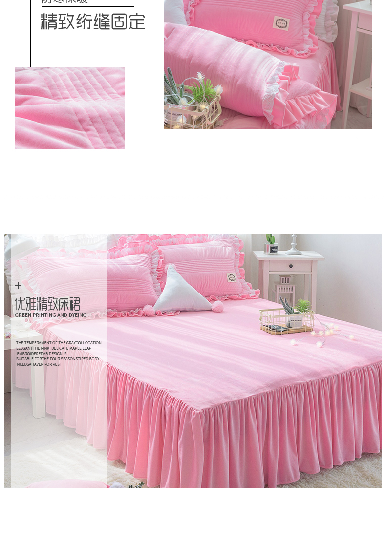 韩国短绒水晶四件套秋冬保暖绗缝夹棉被套床裙款浪漫满屋系列6色