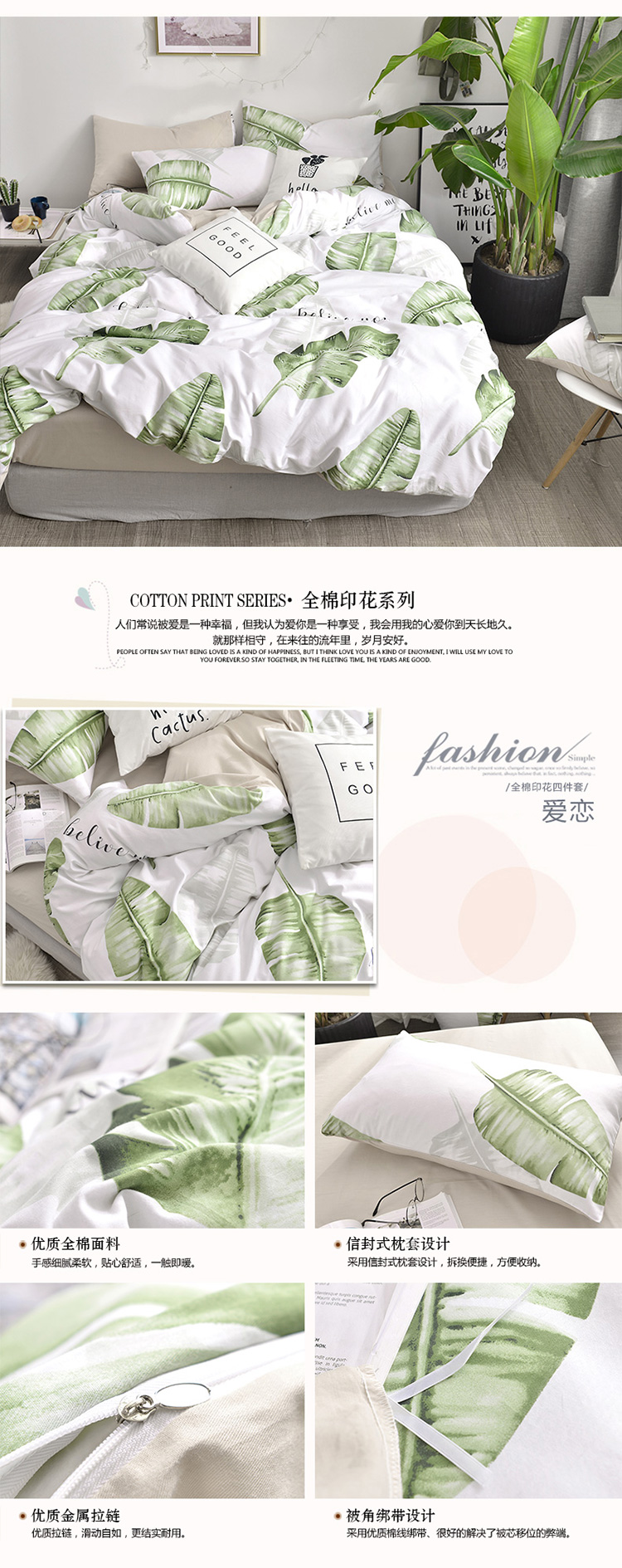 商品名称:漫调家纺 2018全棉北欧小清新四件套爱恋