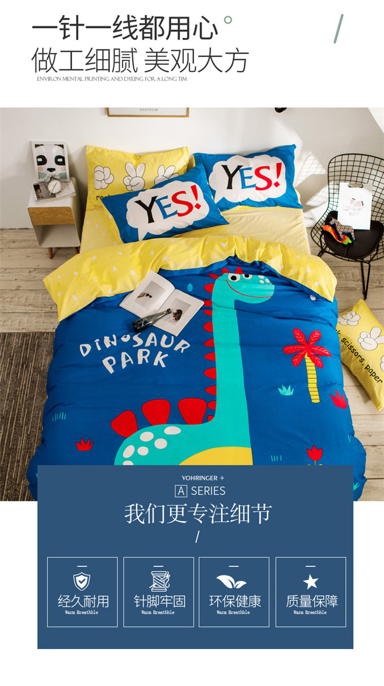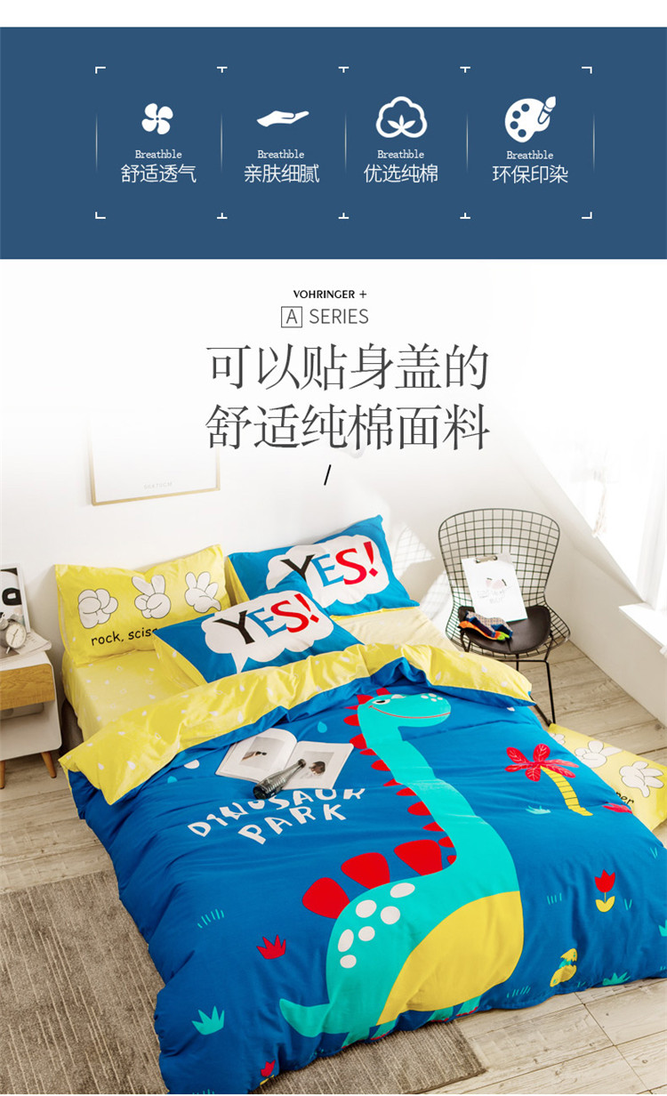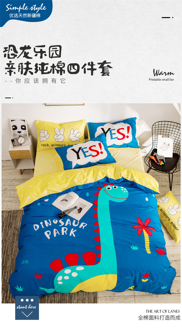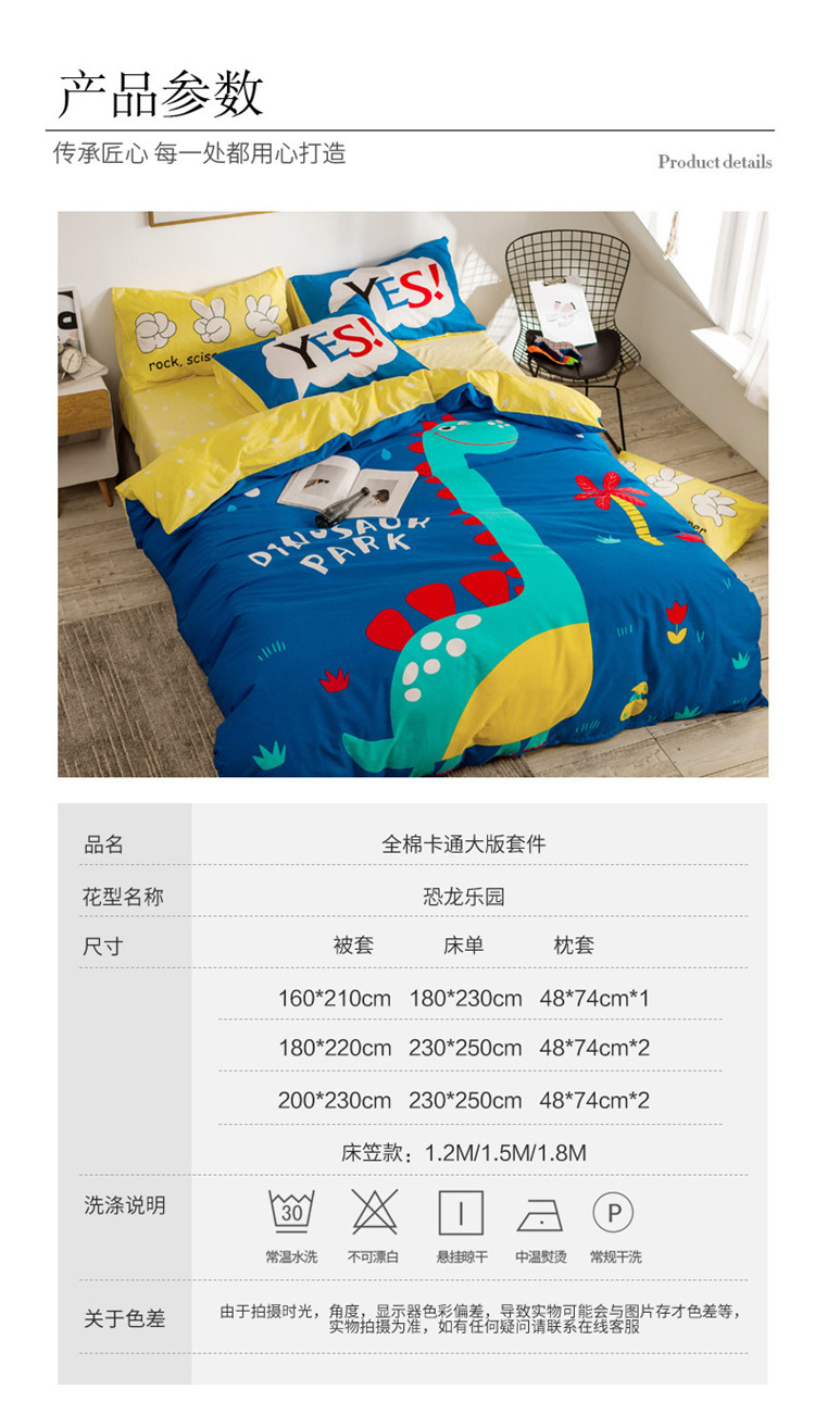 当前位置: 91家纺网 > 商品网购 > 床品套件 > 四件套 > 全棉普通四件套 > 涵宸家纺 大版全棉平网系列 (多规格)套件床单款 恐龙乐园