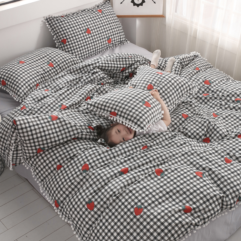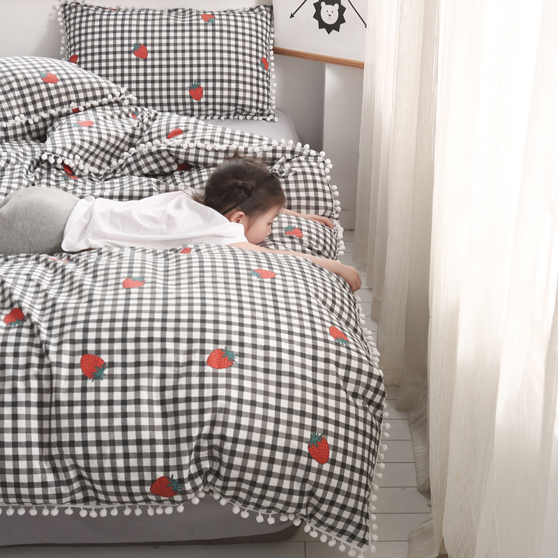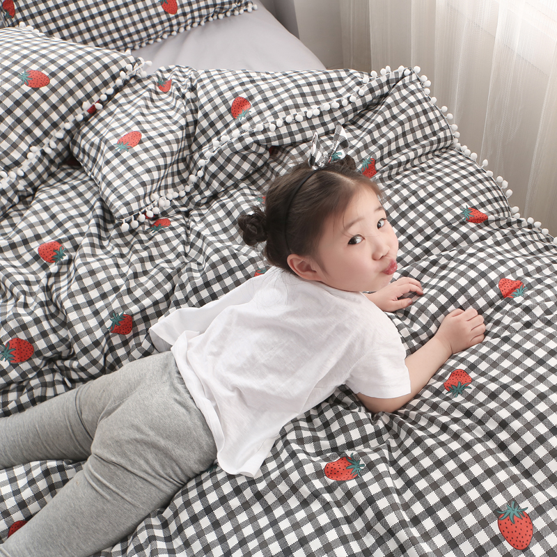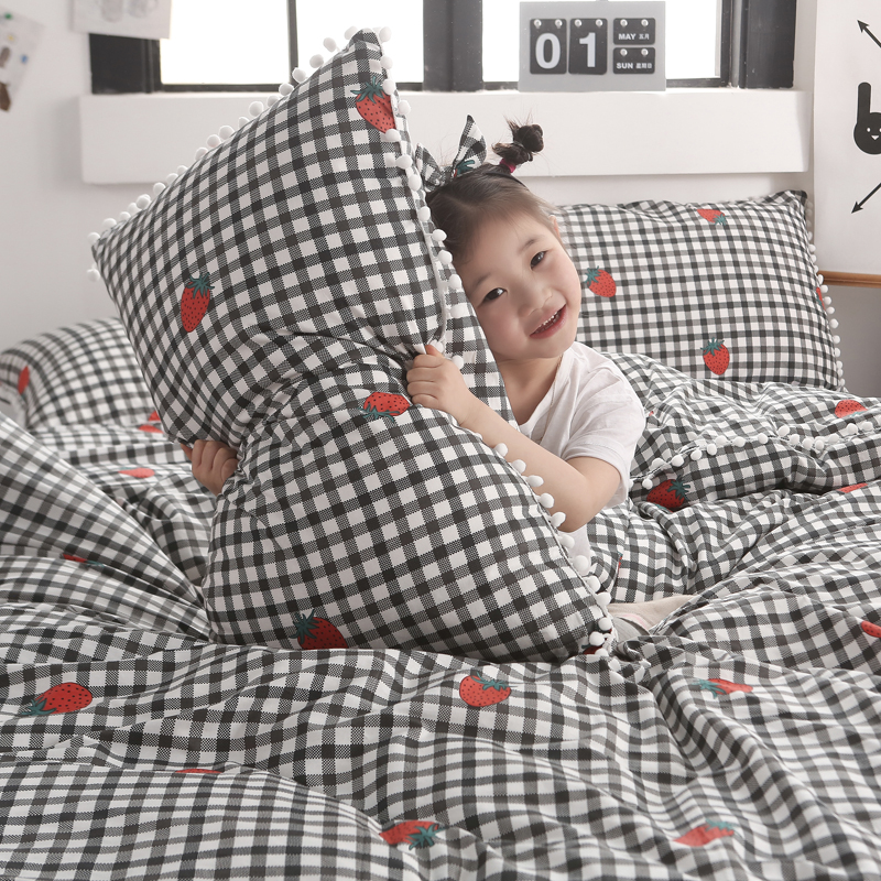 (总)一米阳光 2024新款小清新AB版全棉四件套,贝尔兰,饼干熊,粉黛,简约,卡通甜甜圈,萌萌宠,沁园-灰,沁园-卡其,沁园-紫,水果点点,月半点点