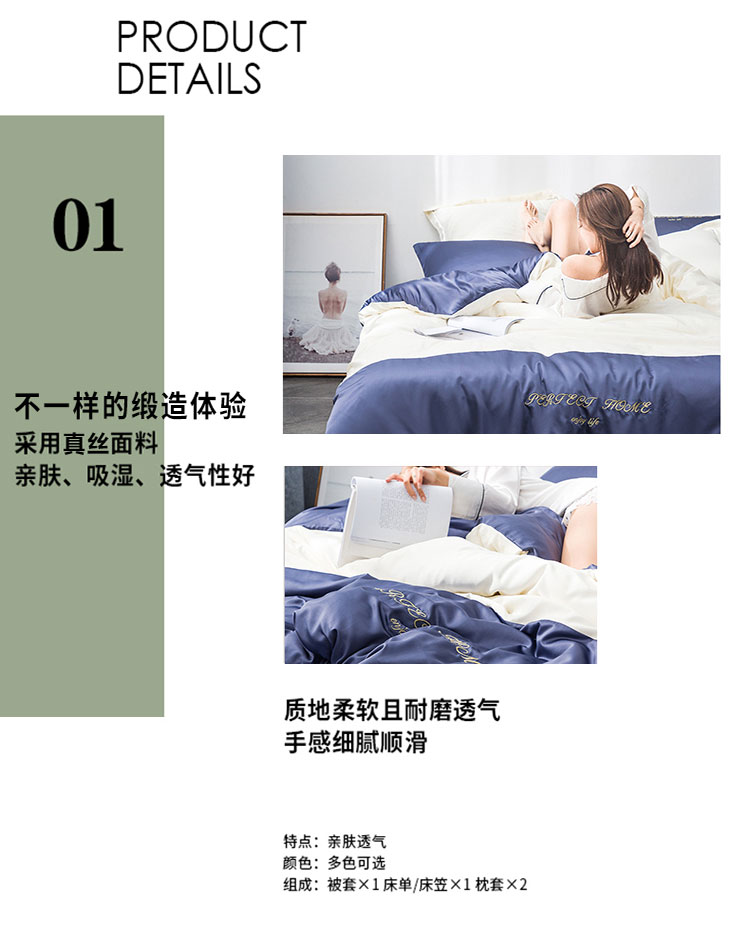 (总)米奈家居 2020新品水洗真丝夏依系列四件套