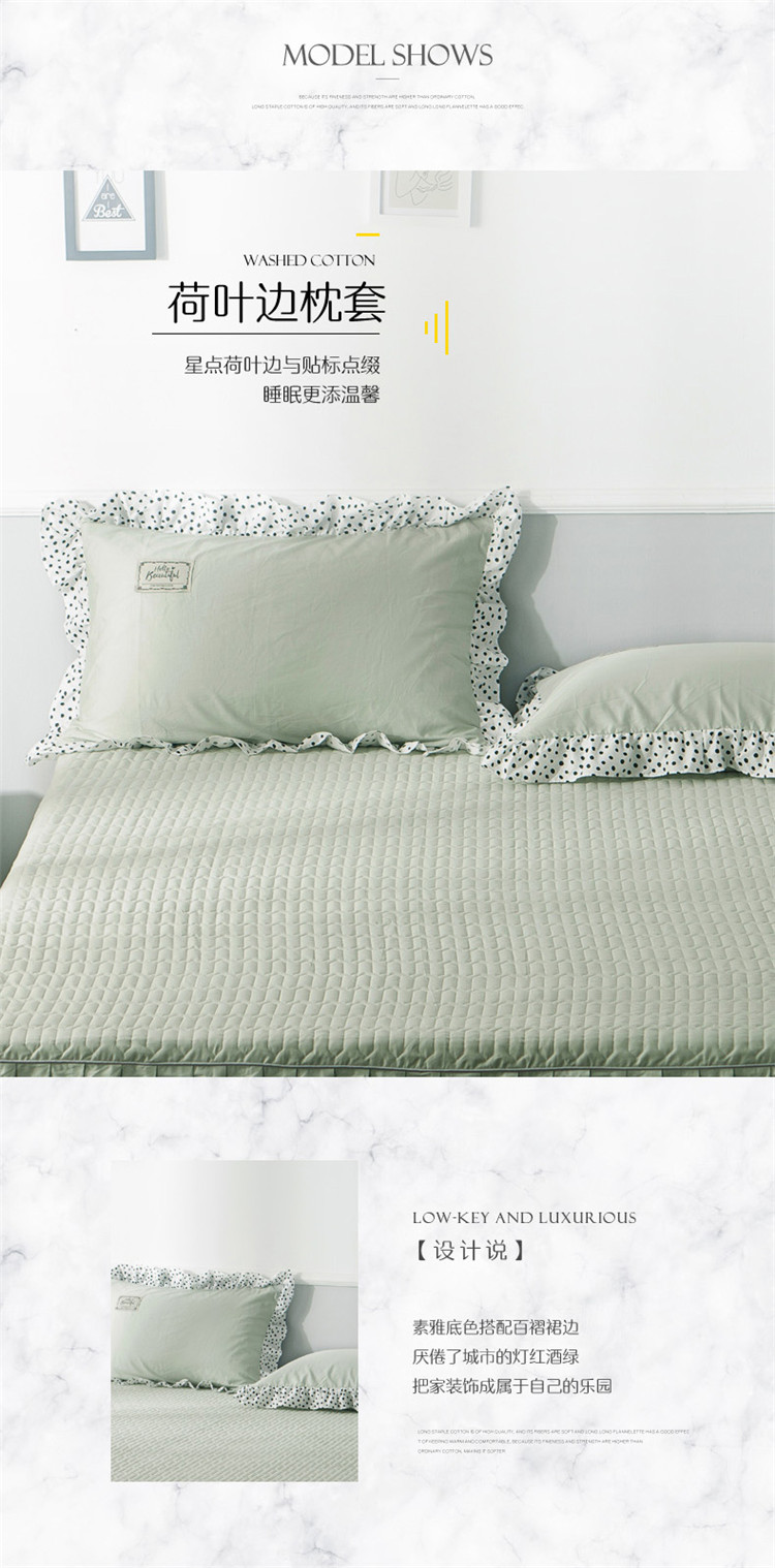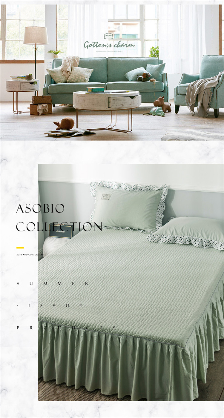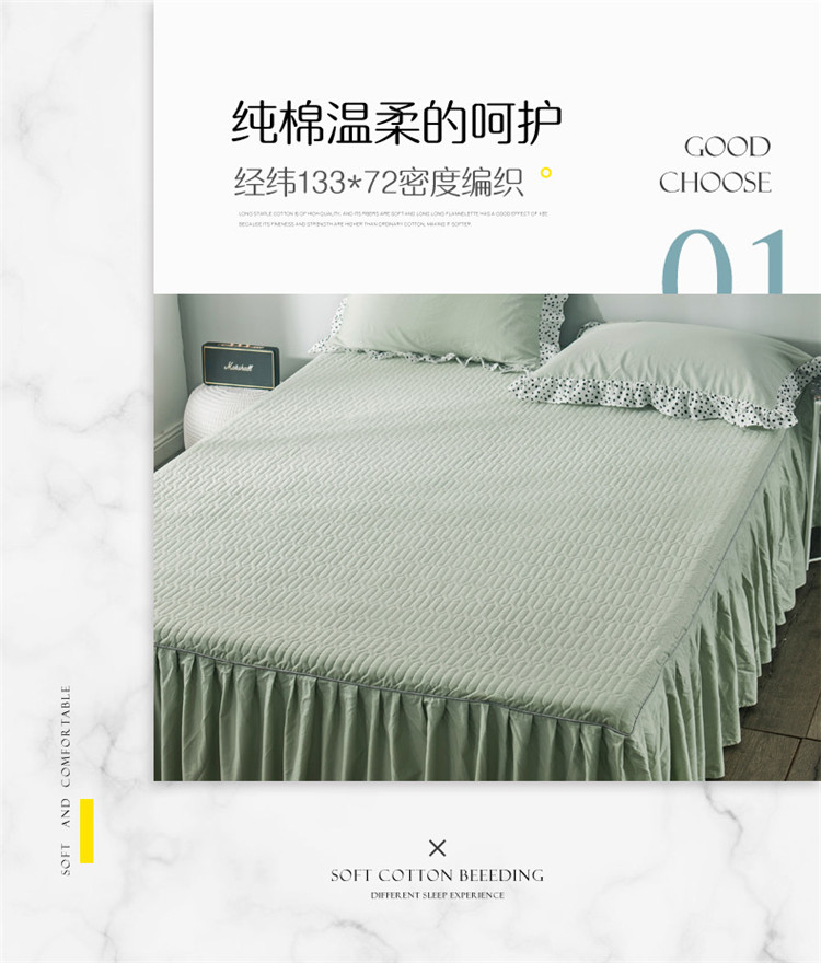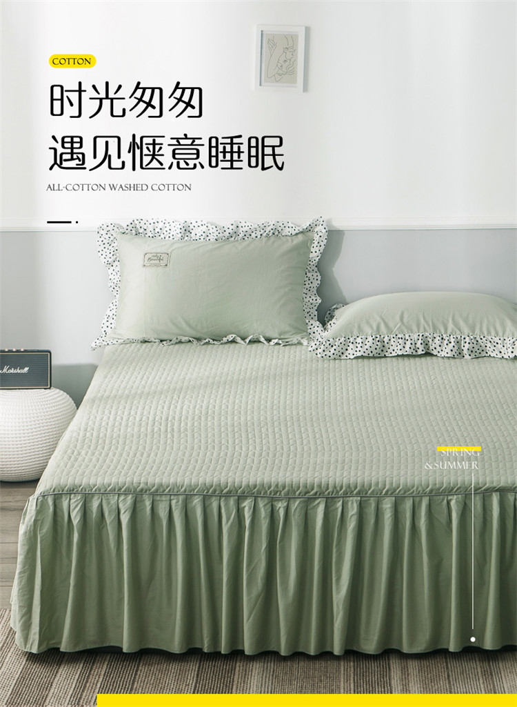 万盛家纺 全棉滚绳款单品夹棉床裙 豆绿