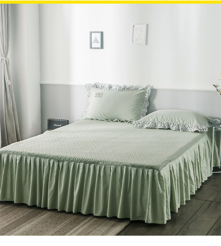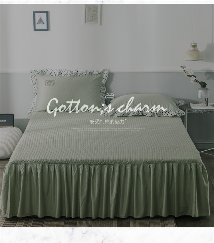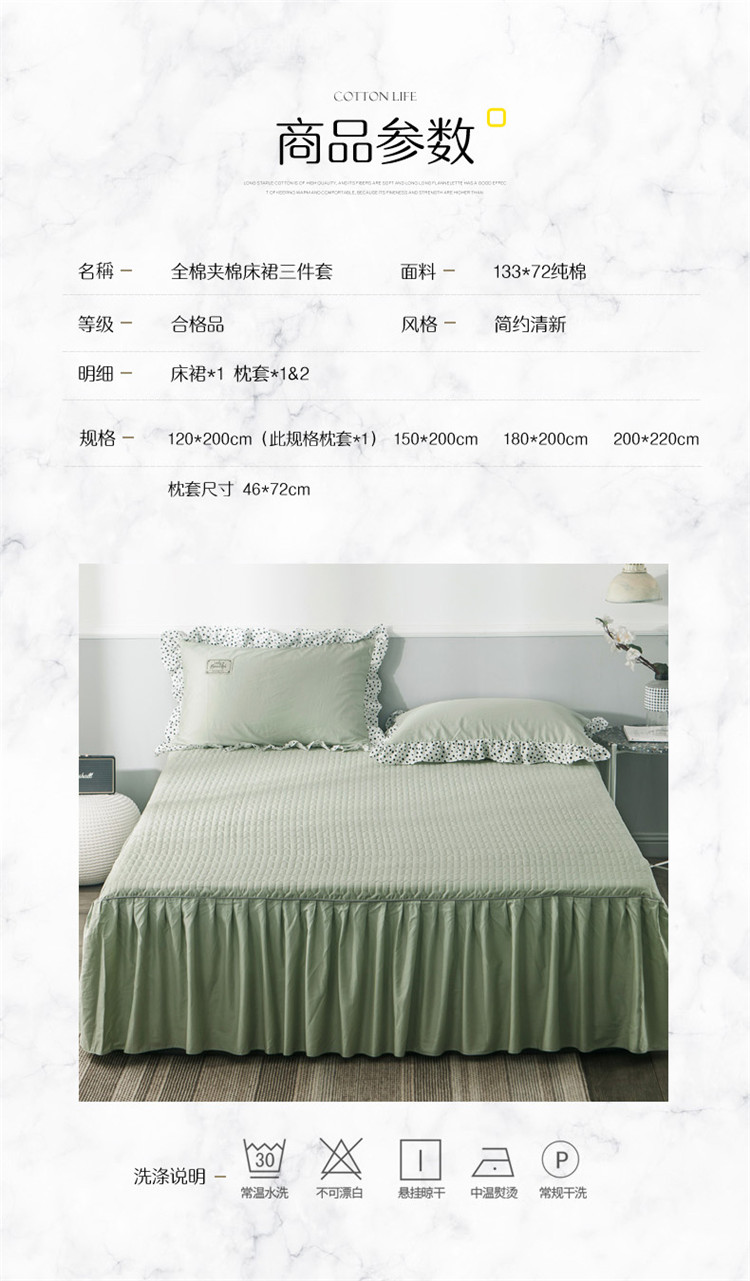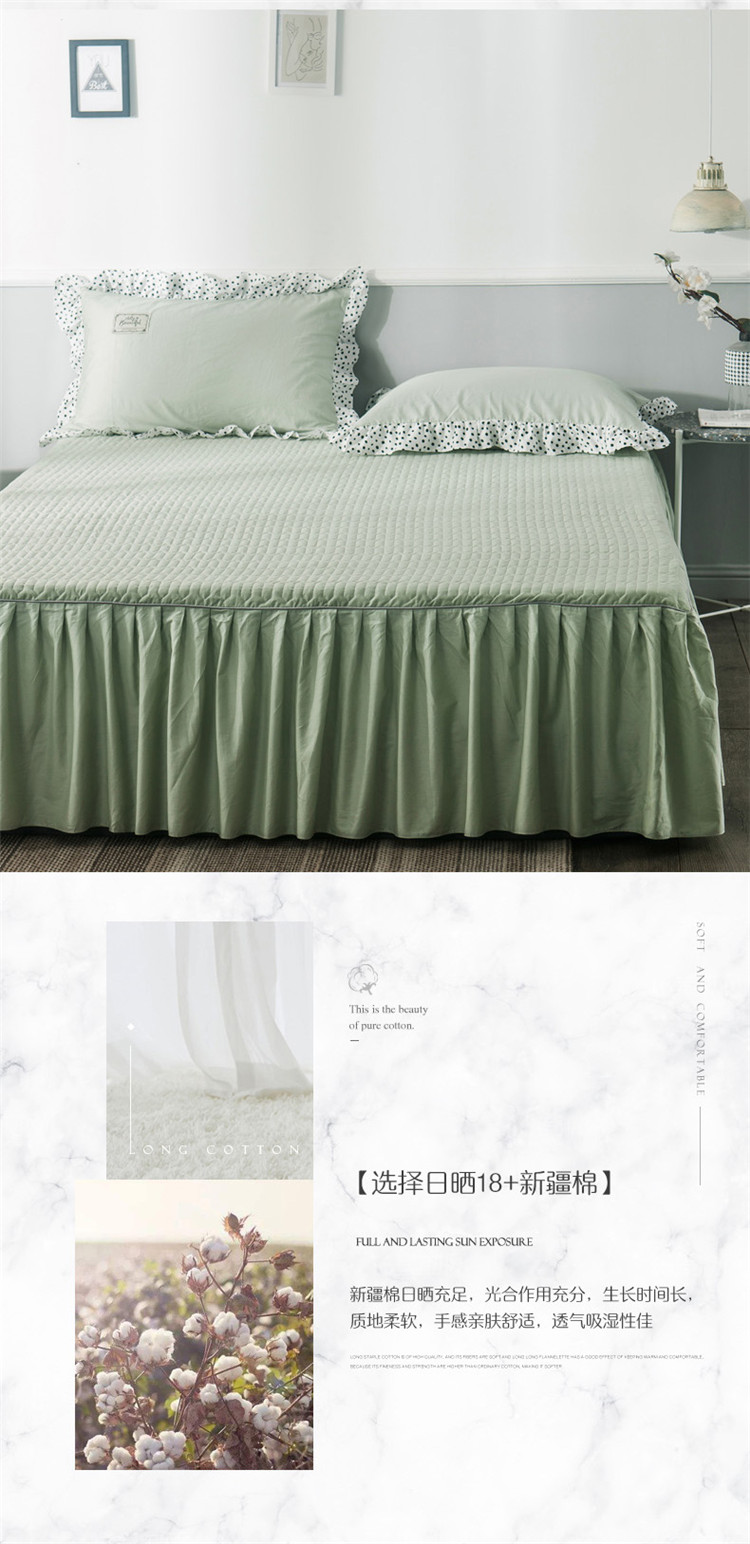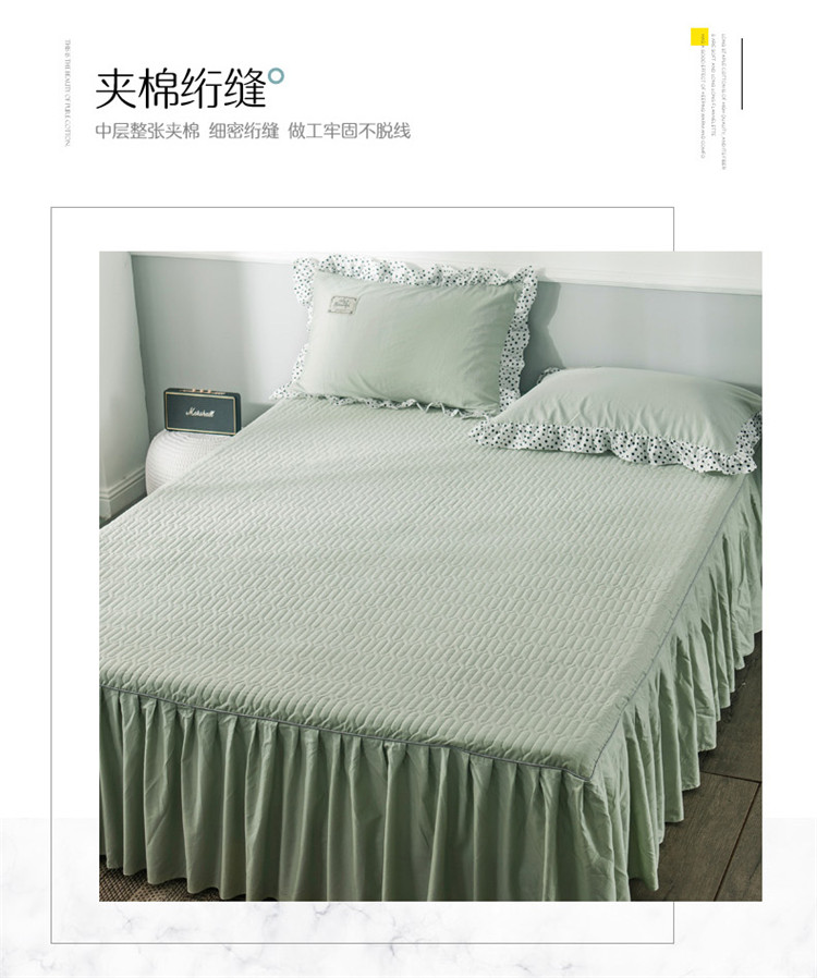 商品名称:万盛家纺 全棉滚绳款单品夹棉床裙 豆绿