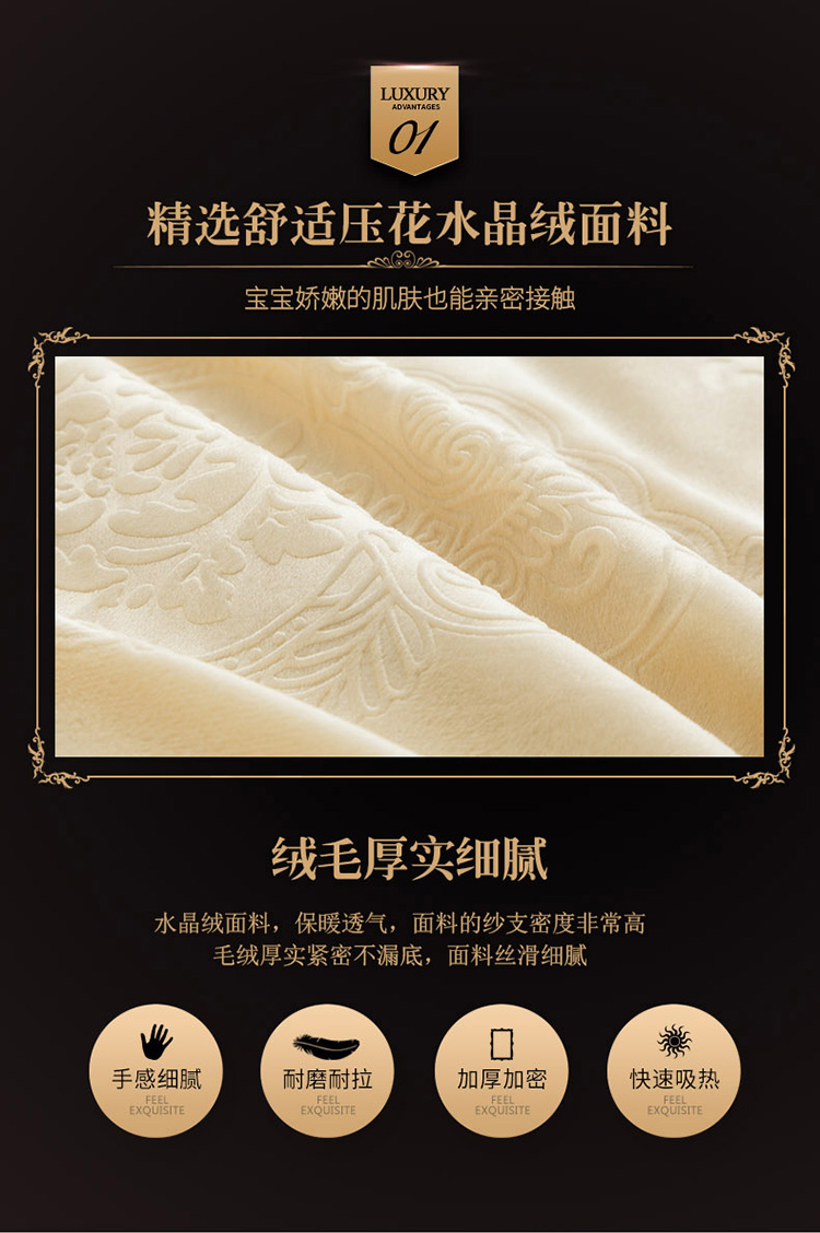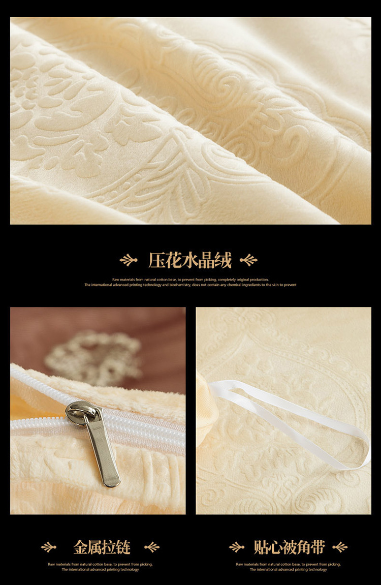 兴美佳水晶绒压花拉链款四件套-豪庭盛世象牙白