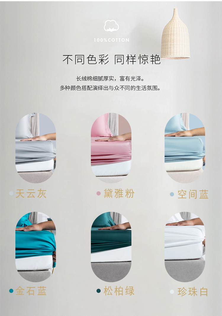 100支床笠A类长绒棉单床笠全棉纯棉单品纯色轻奢(总)小米笠,桉叶绿,海岳蓝,极地蓝,流光金,慕莎粉,珊瑚紫,时空银,太妃橙,毛毡礼袋