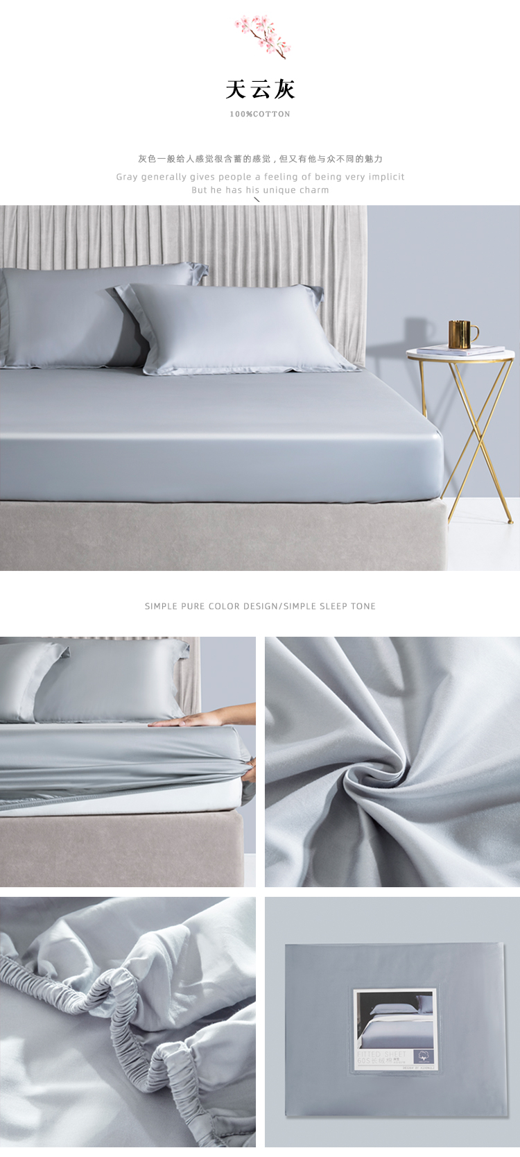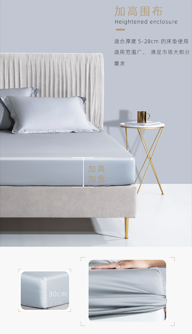 商品名称:小米笠 2021新款60支长绒棉纯色床笠三件套床盖床单可定制四季款 天云灰