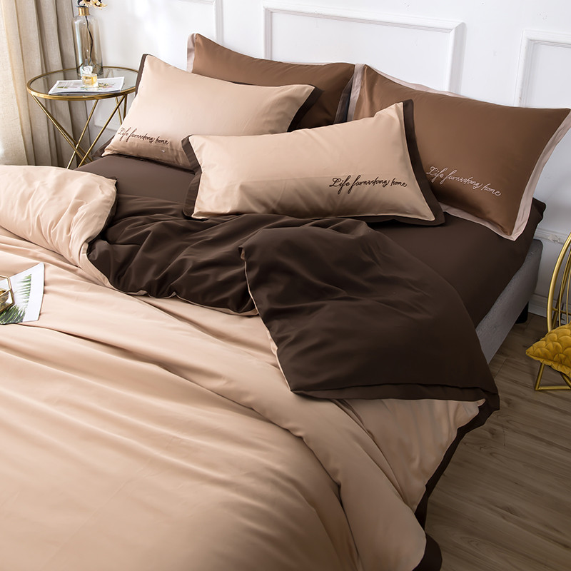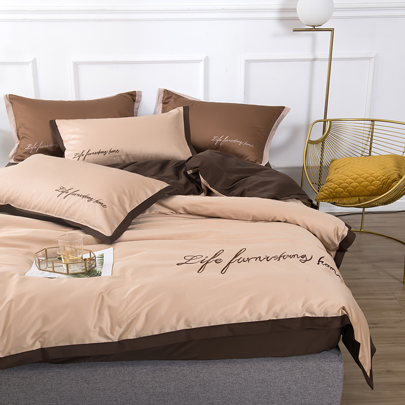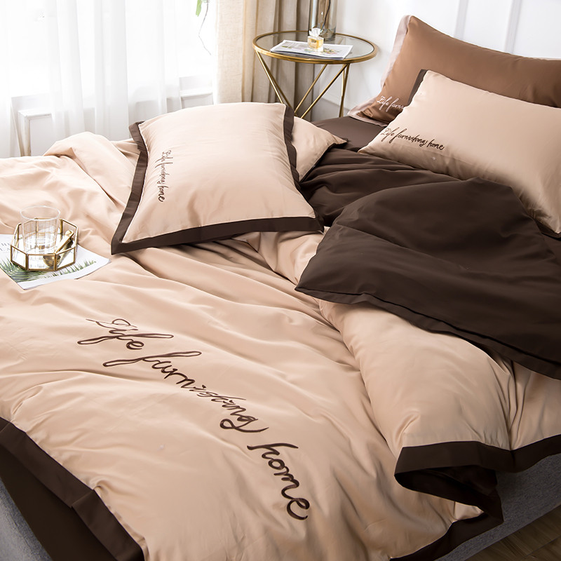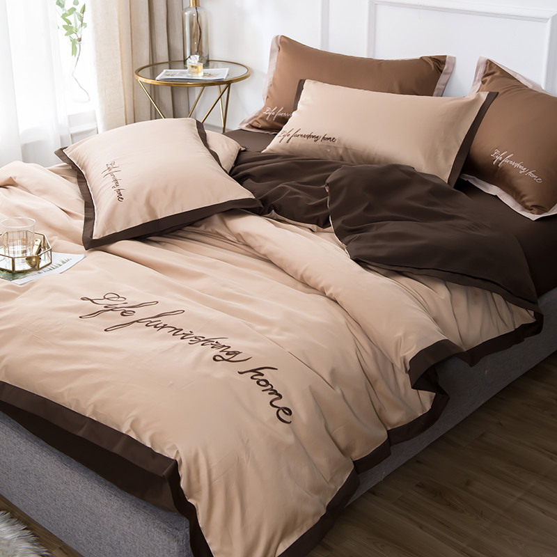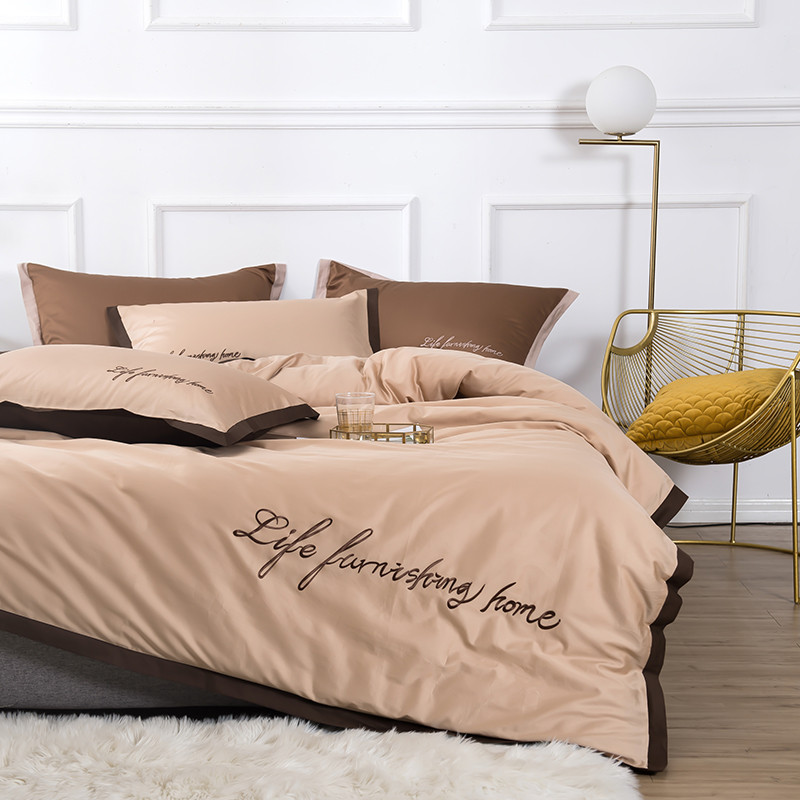 商品名称:太古汇 60支贡缎长绒棉纯色双拼四件套棚拍图 班尼咖