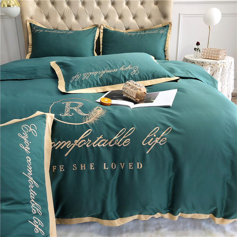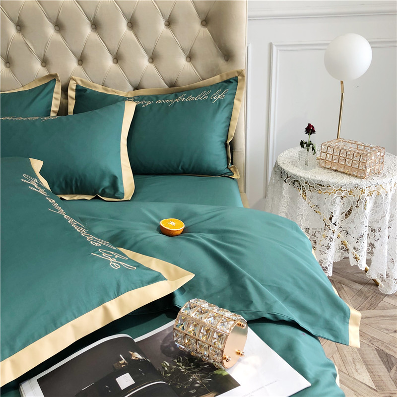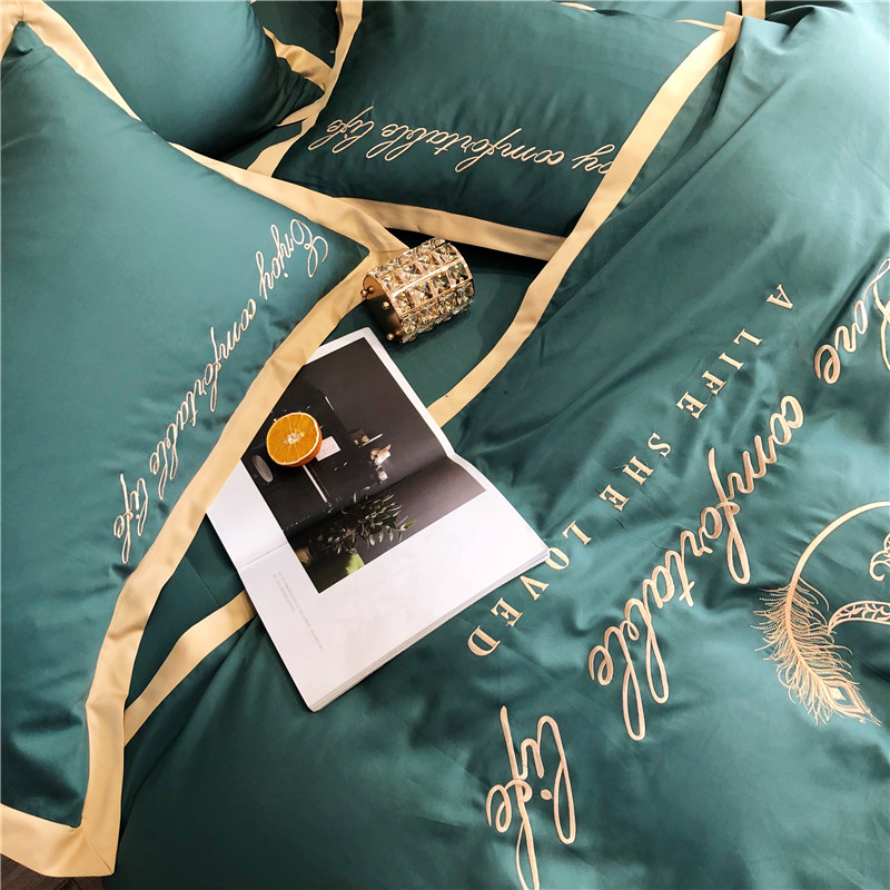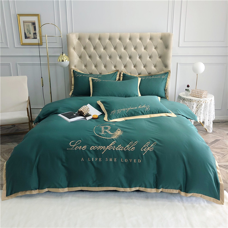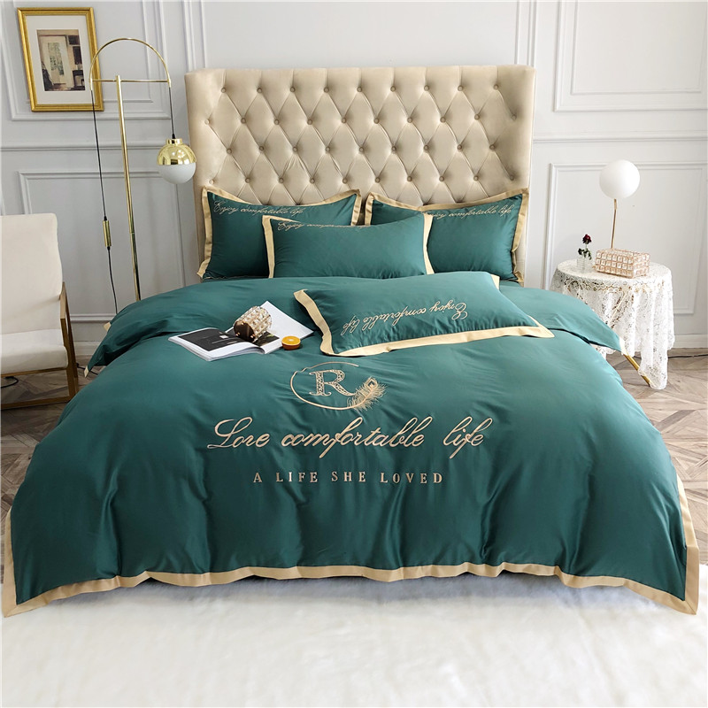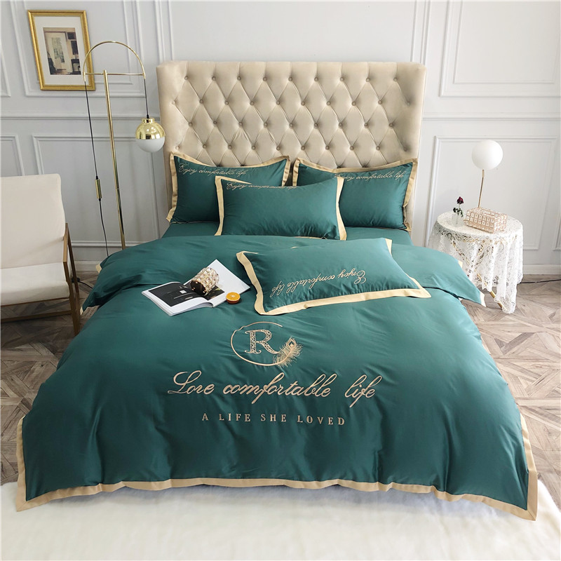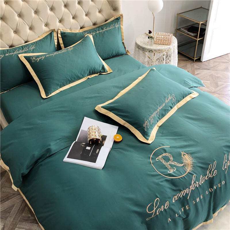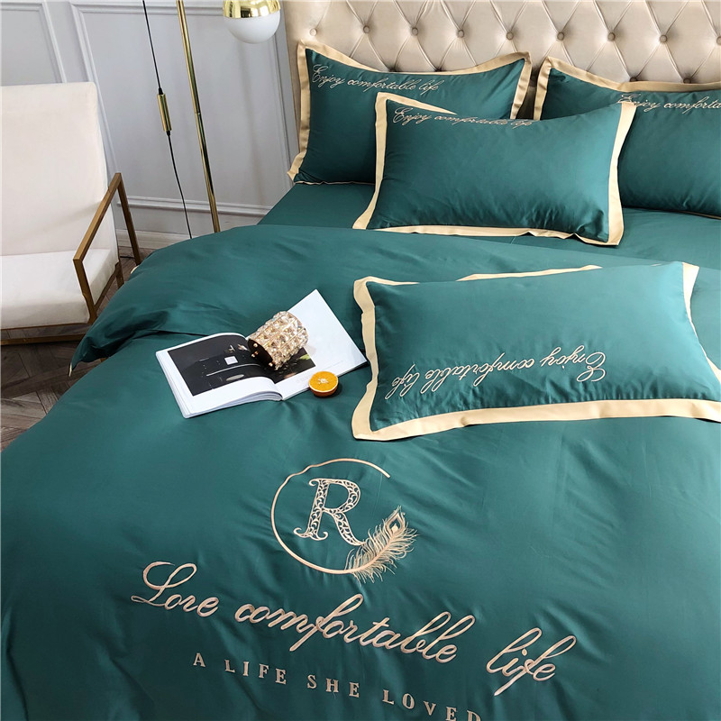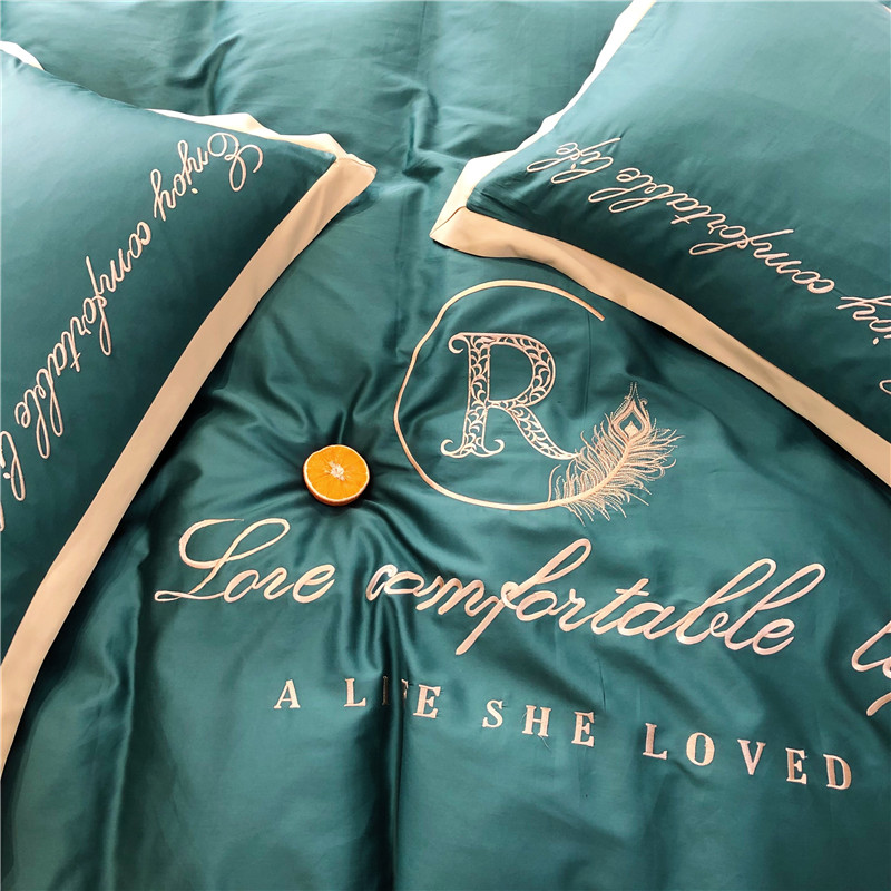 馨蕊家居 2021新款60长绒棉绣花四件套 简爱-松花绿