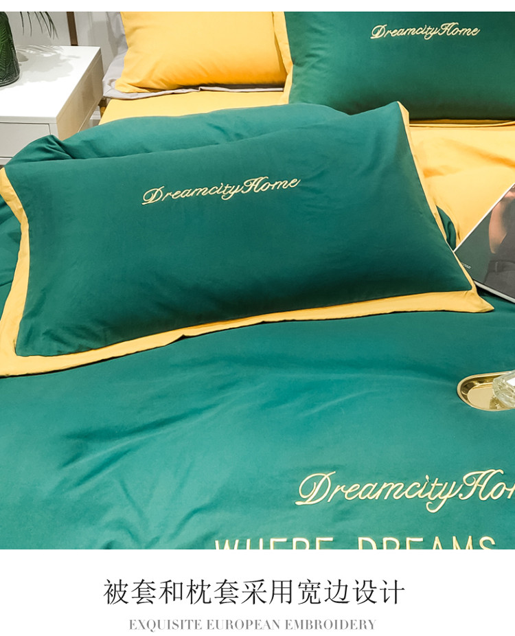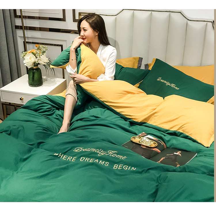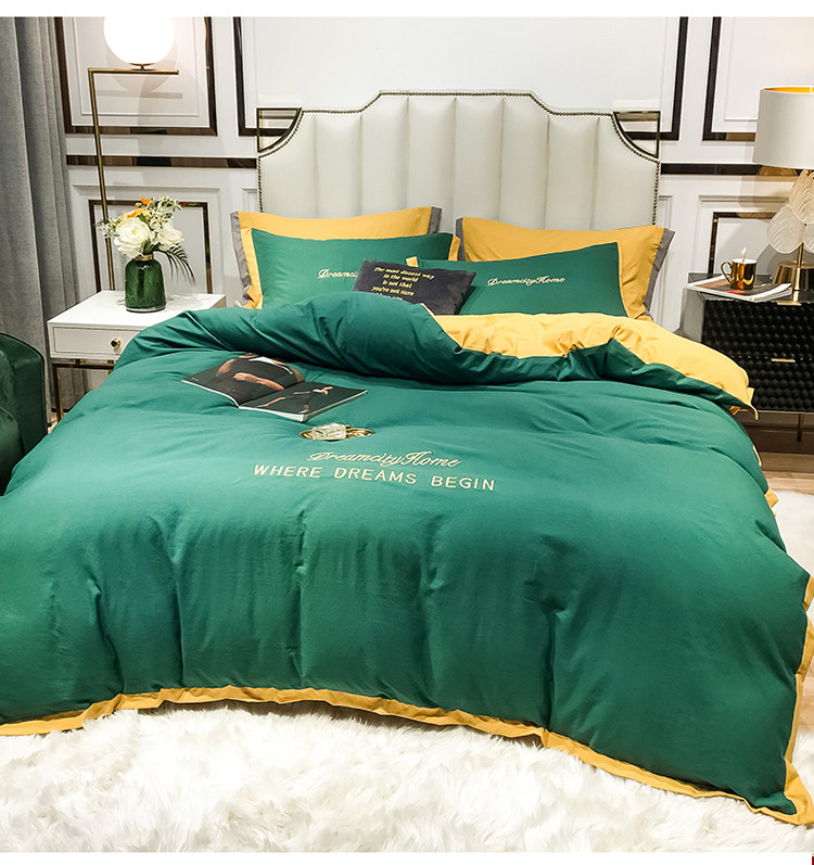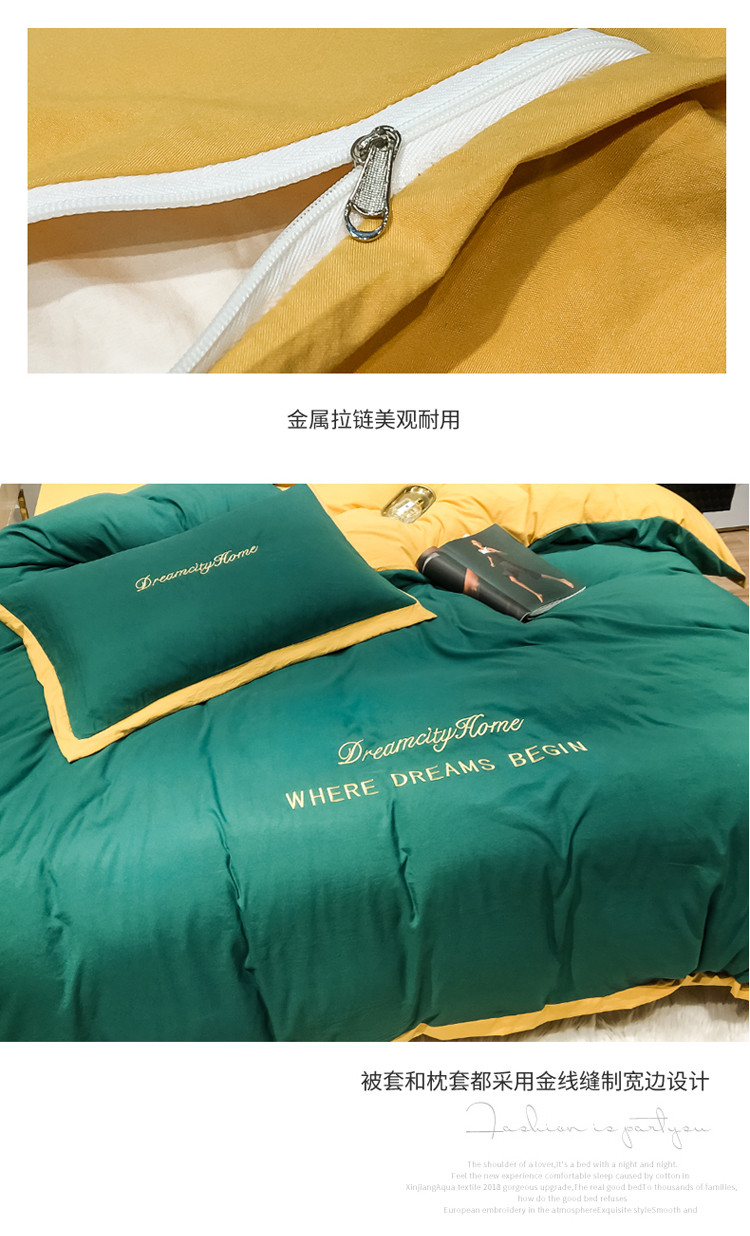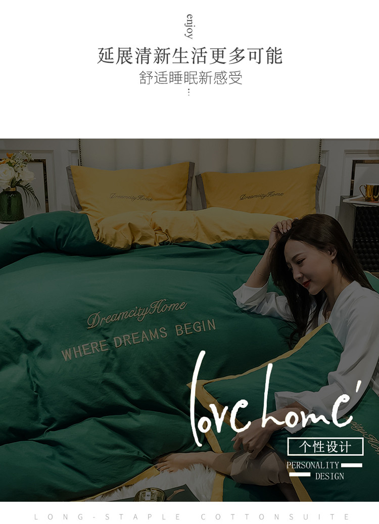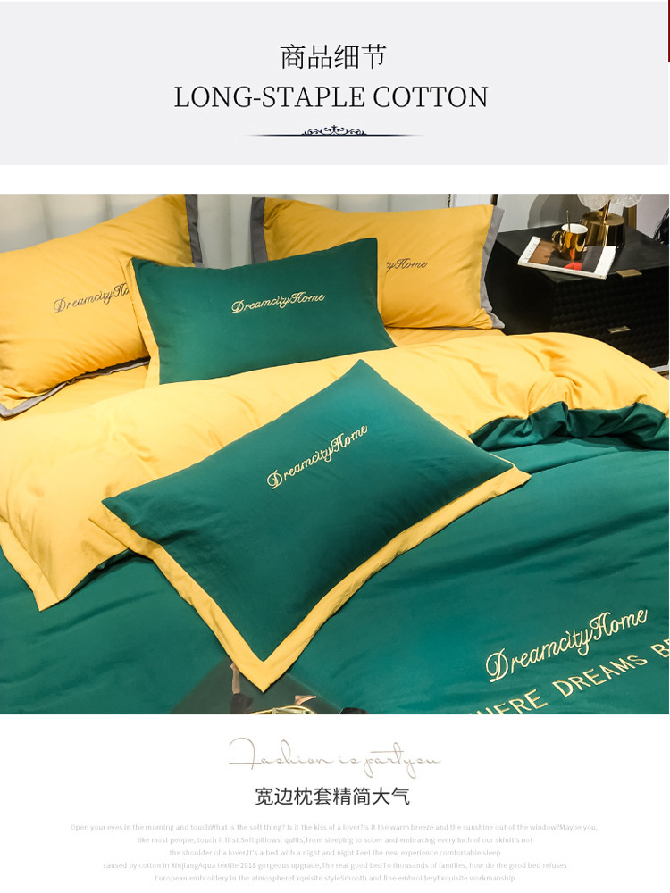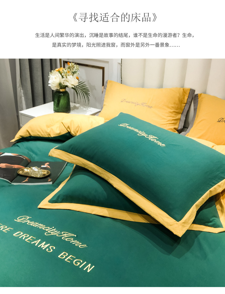 (总)索飞特 2021春夏新款高密度水洗棉宽边刺绣四件套,粉白色,姜黄,奢绿,深灰,松石绿,雾蓝,象牙白,樱花粉