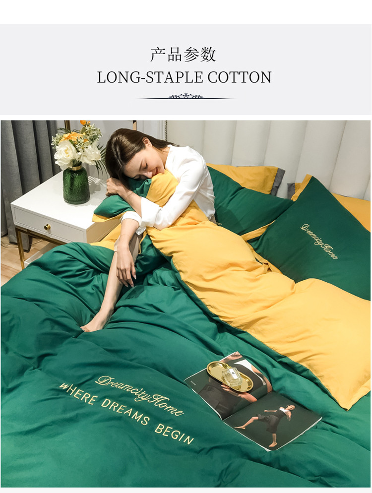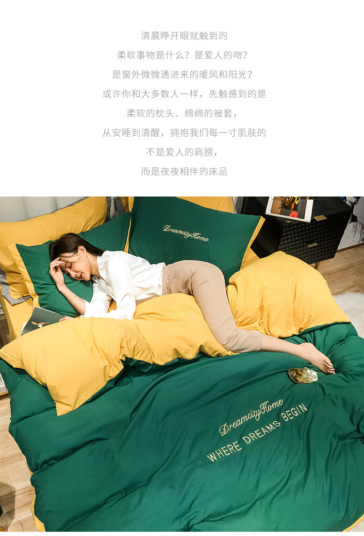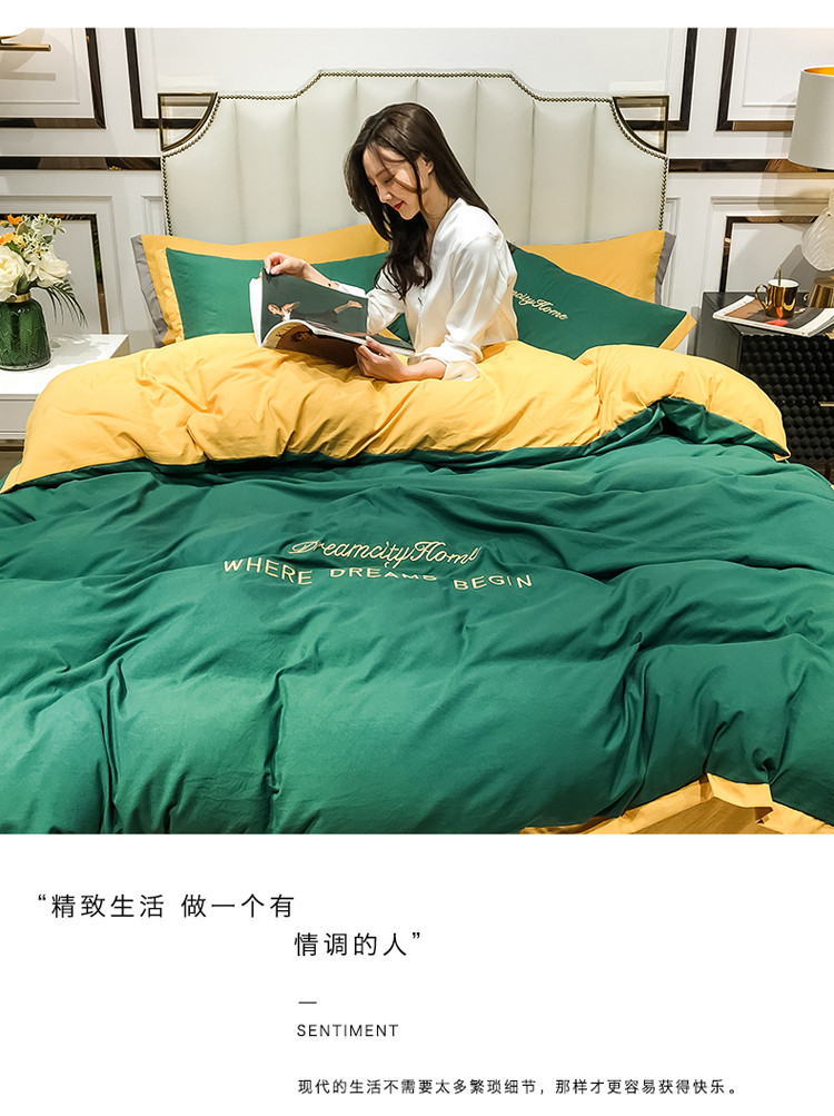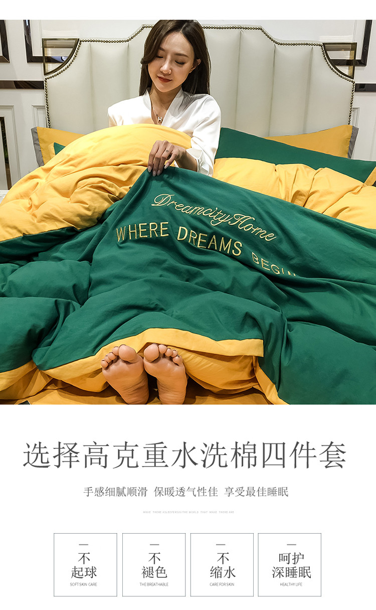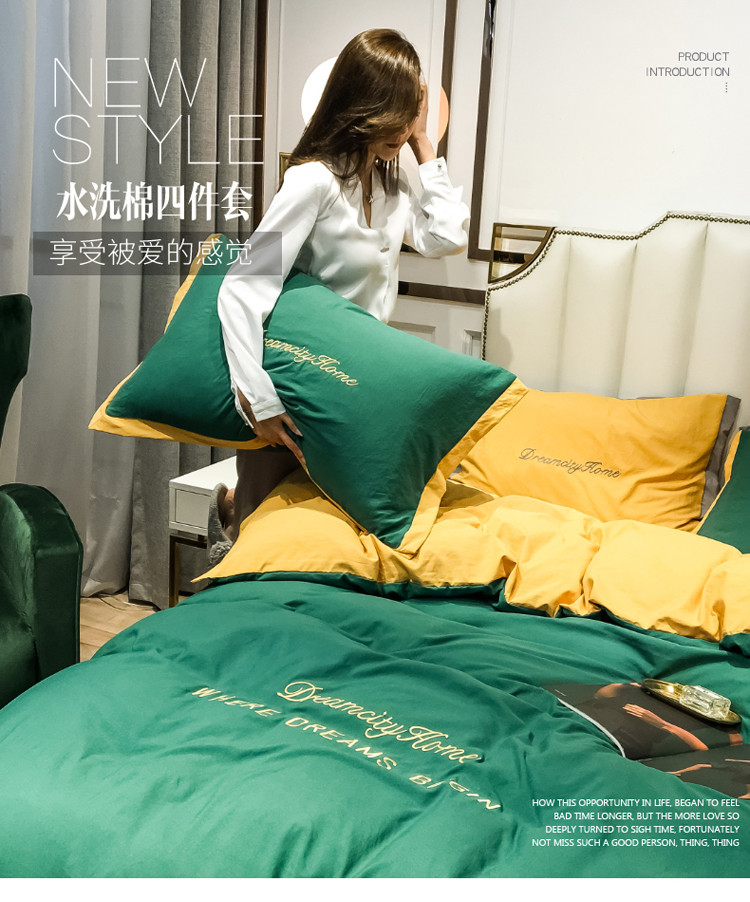 (总)索飞特 2021春夏新款水洗棉四件套三色系列,宾利蓝,高级灰,活力黄,靓粉,靓黄,墨绿,绅士蓝,甜豆沙