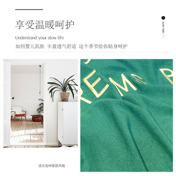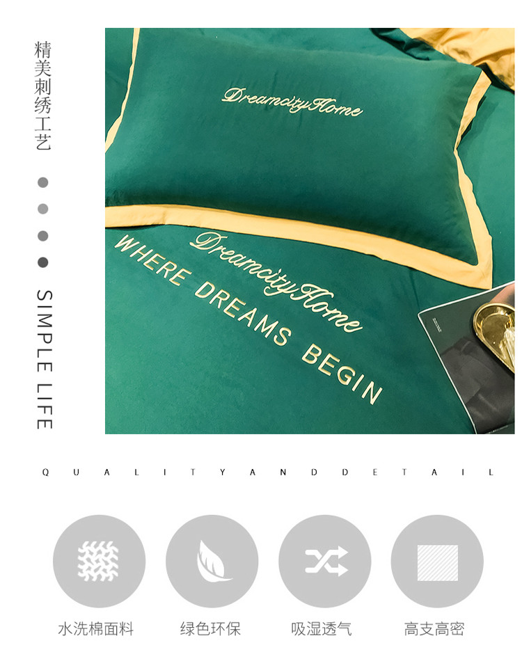 商品名称:索飞特 2021春夏新款高密度水洗棉宽边刺绣四件套 松石绿