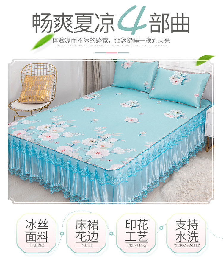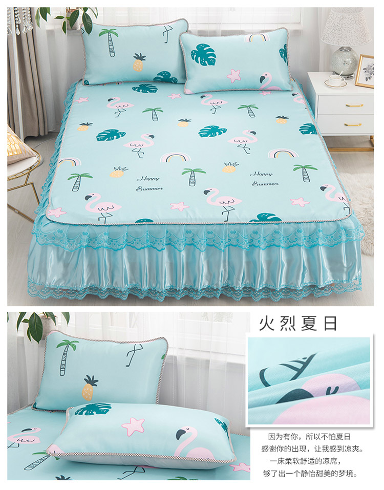 商品名称:雨洋2025新款机洗印花床裙凉席 火烈夏日