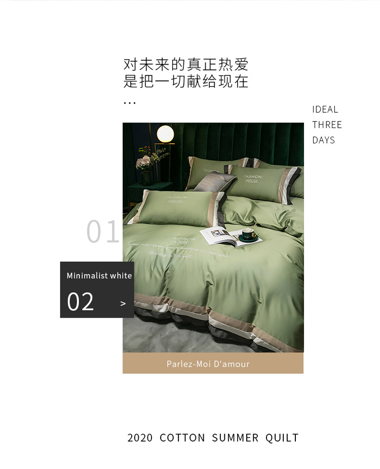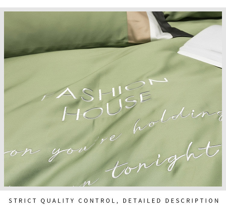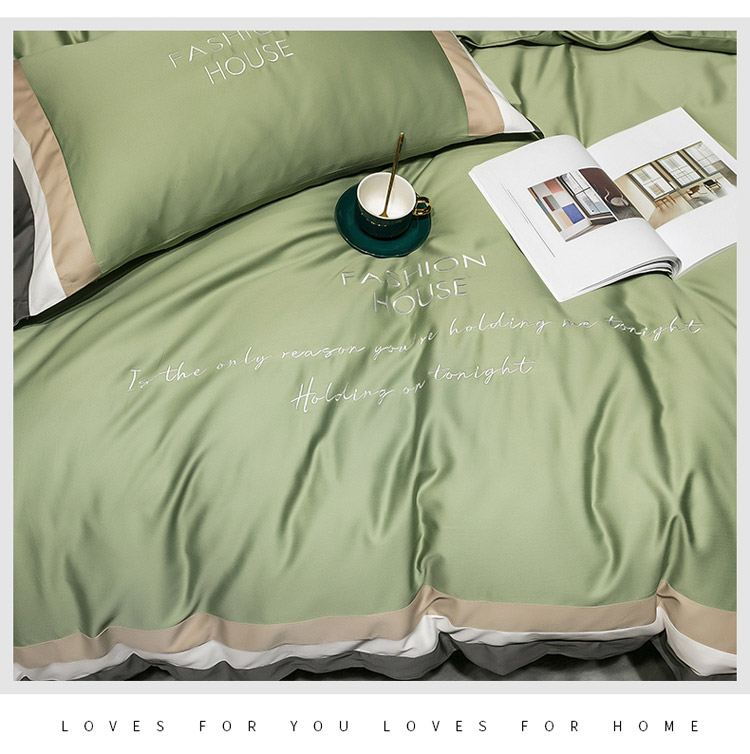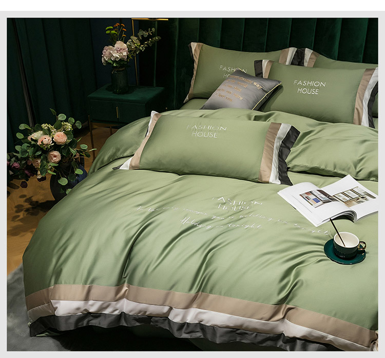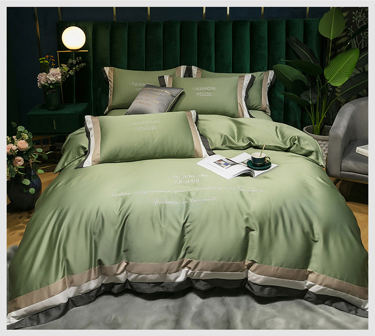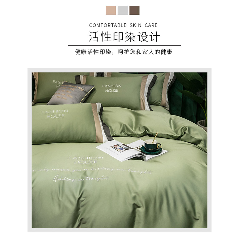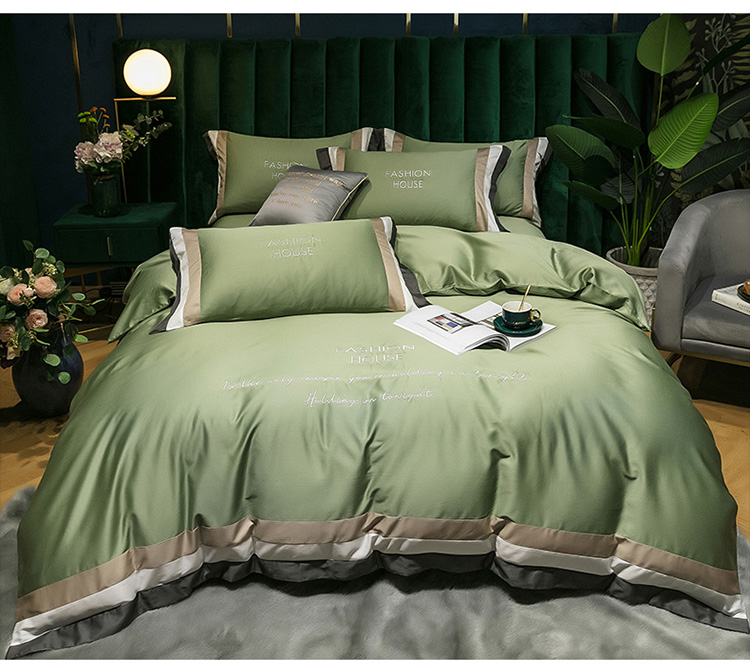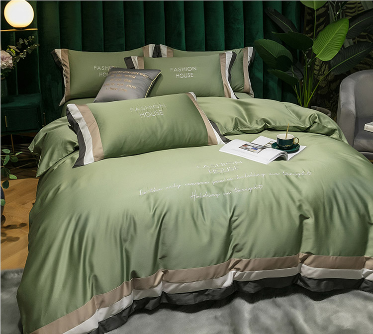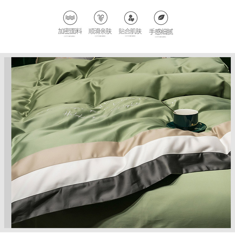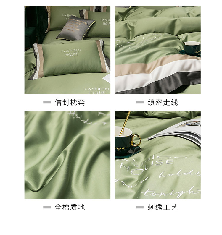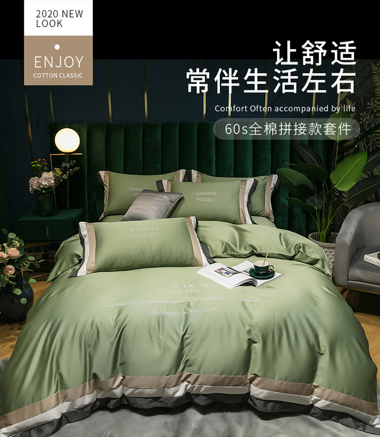 商品名称:爱缦 2020新款双面60S长绒棉绣花拼接款四件套 灰草绿
