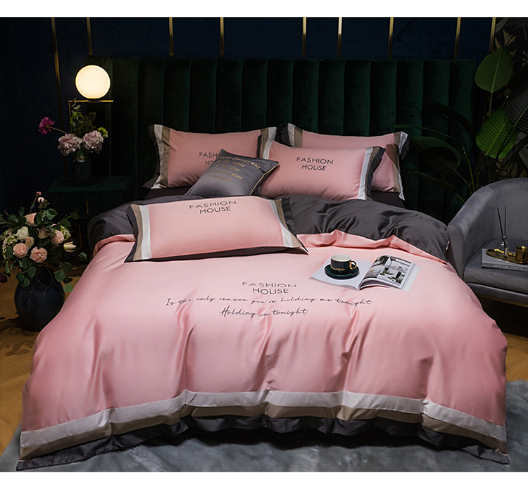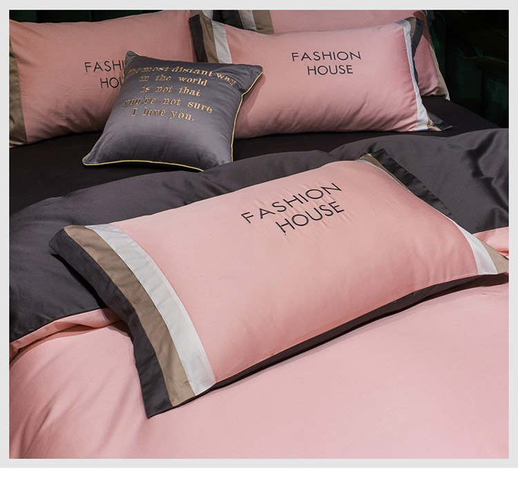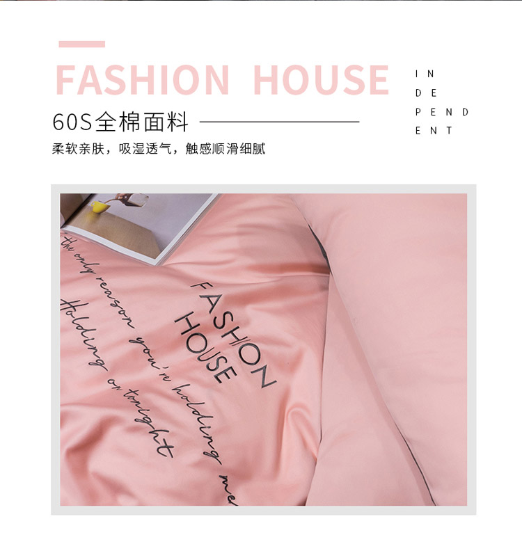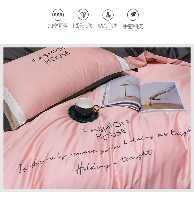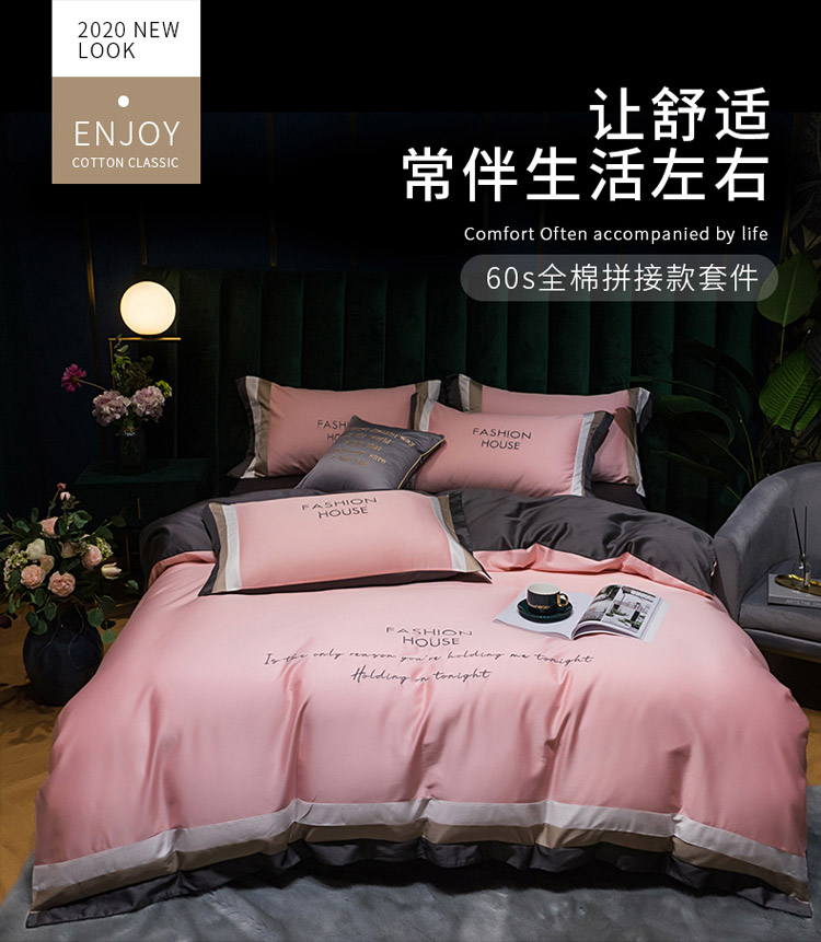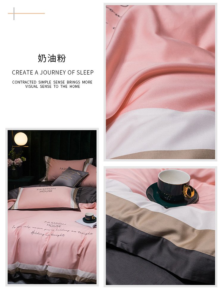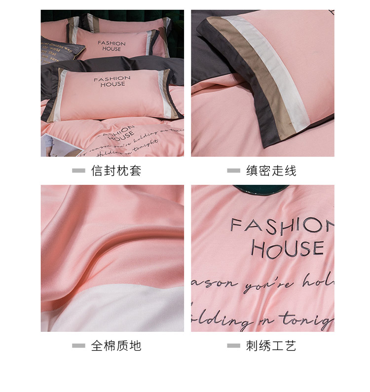 商品名称:爱缦 2020新款双面60S长绒棉绣花拼接款四件套 奶油粉