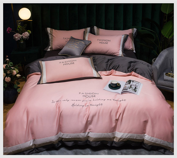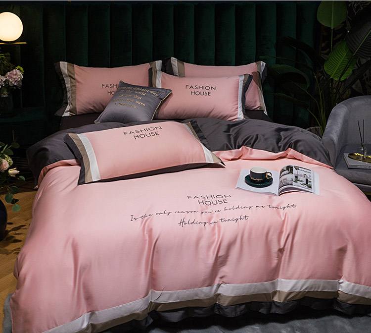 爱缦 2020新款双面60S长绒棉绣花拼接款四件套 奶油粉
