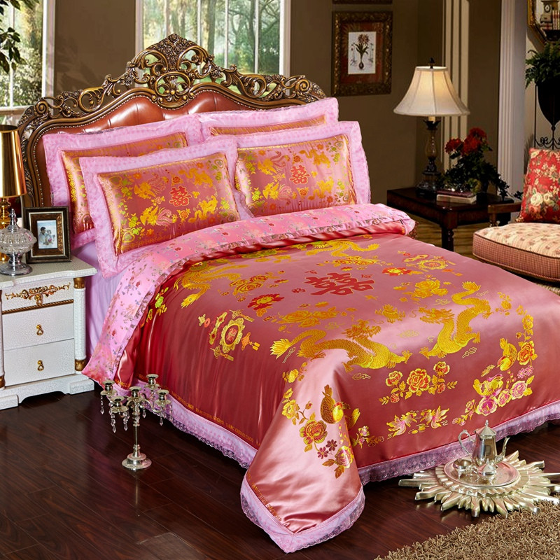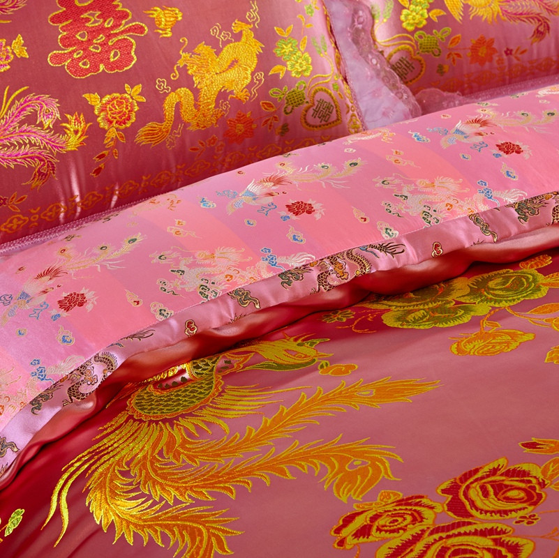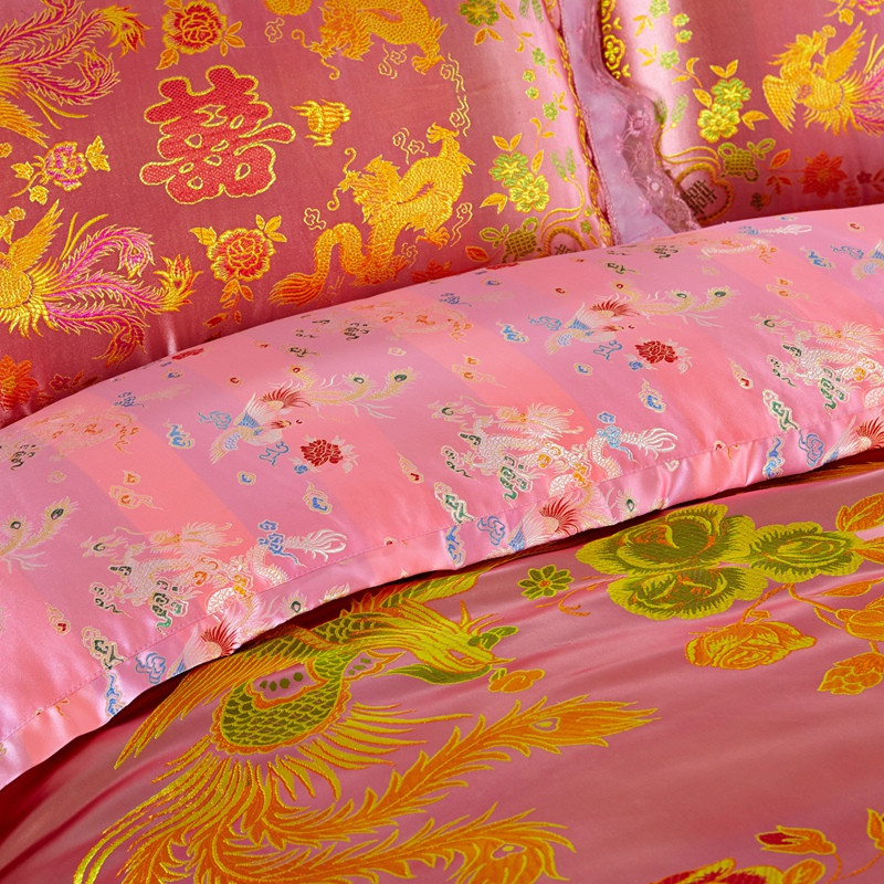 商品名称:欣喜来 2020新款绸缎婚庆脱卸款四件套 龙凤双喜-玉