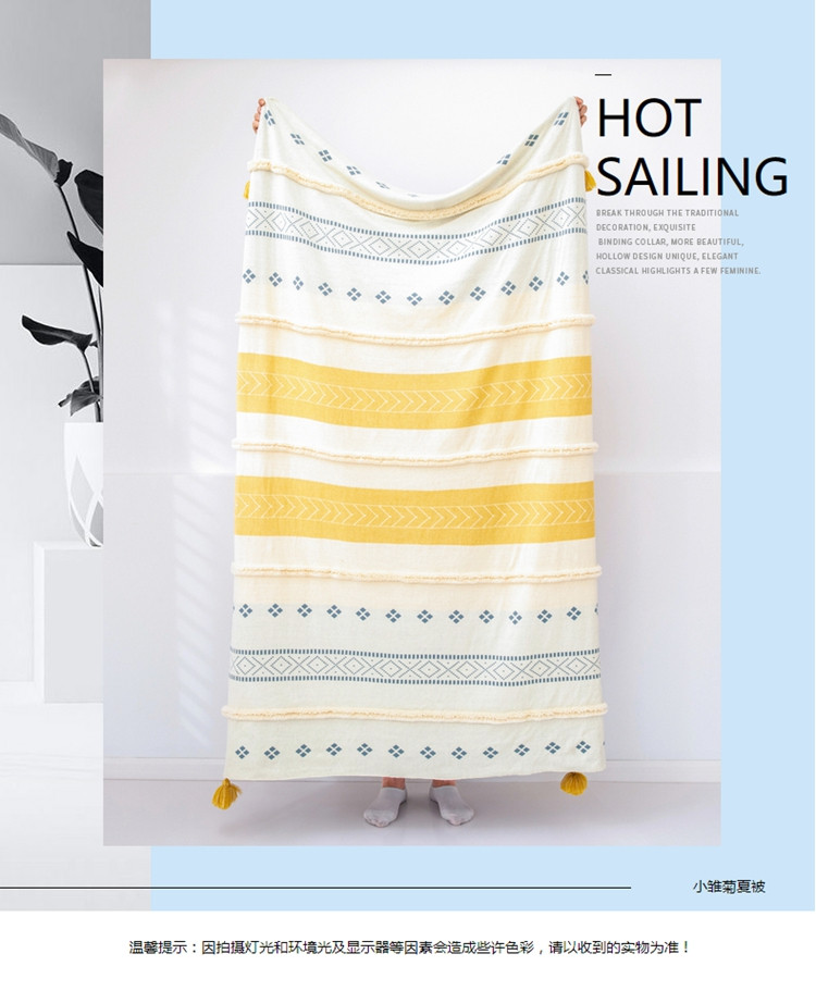 暖绵绵 新款全棉A类针织毯子线毯 幕曼黄色130*170cm