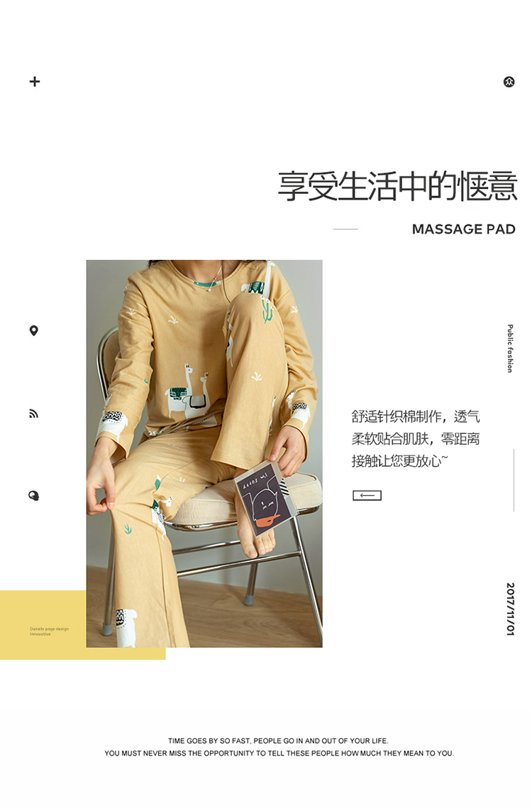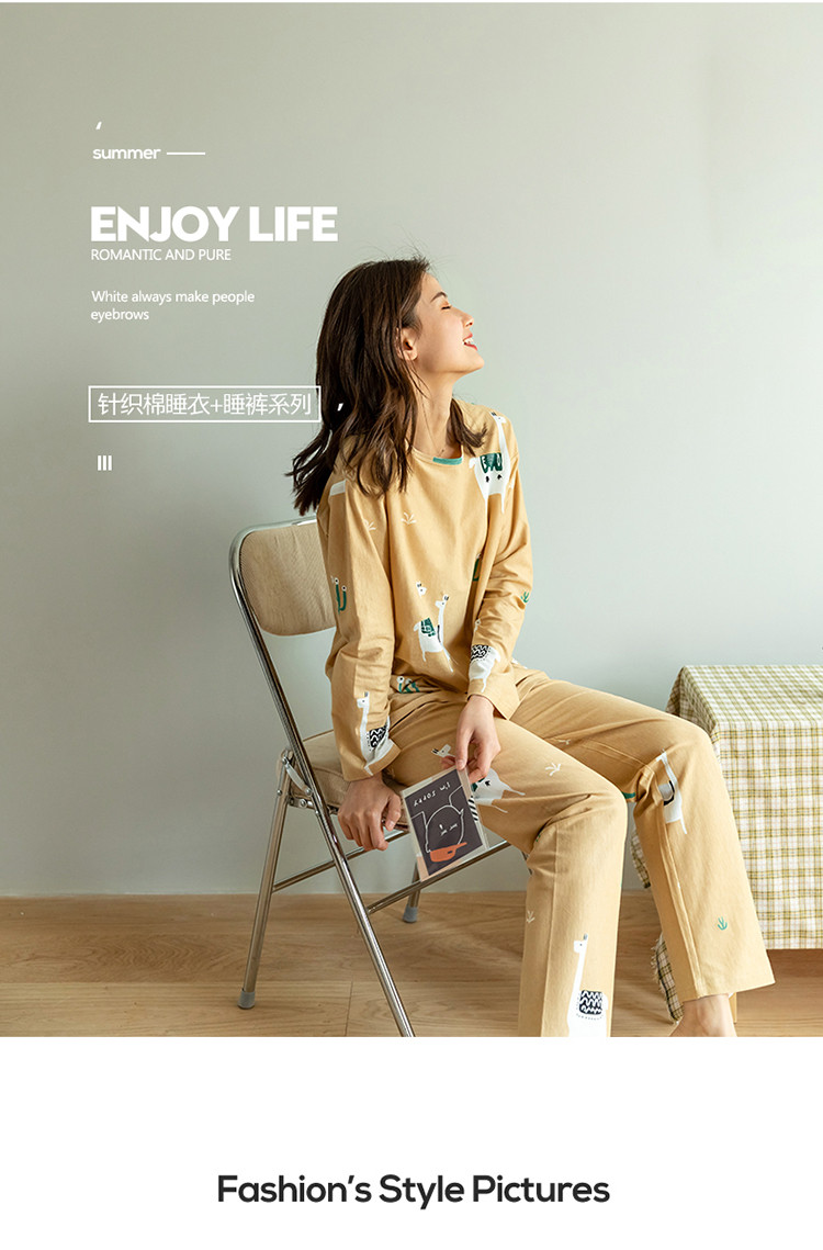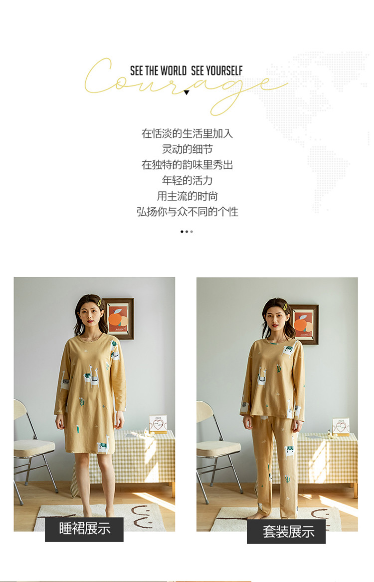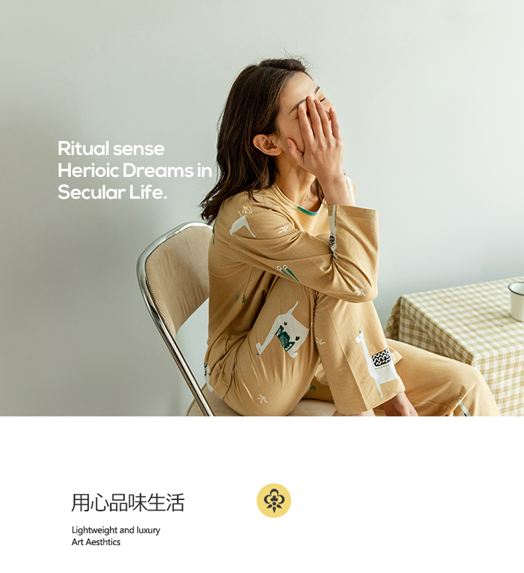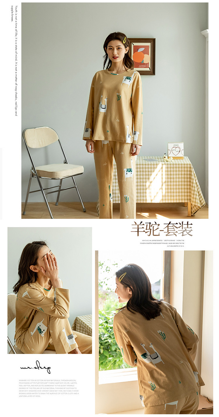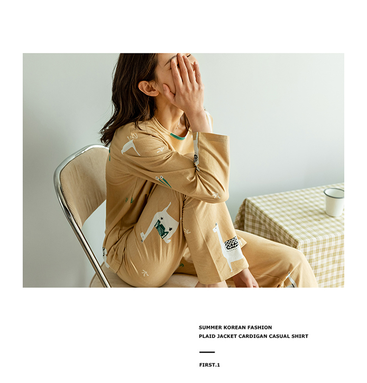当前位置: 91家纺网 > 商品网购 > 居家日用 > 睡衣/家居服套装 > 风向标家纺 2020新款针织印花家居服 羊驼-套装