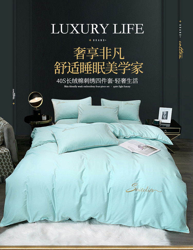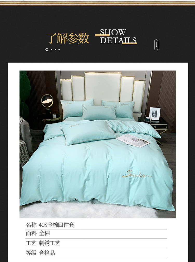 商品名称:(总)艾佳2025新款款全棉40贡缎纯色刺绣轻奢风系列四件套