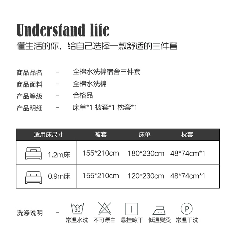 商品名称:(总)蓝巢 2020新款全棉水洗棉学生季三件套