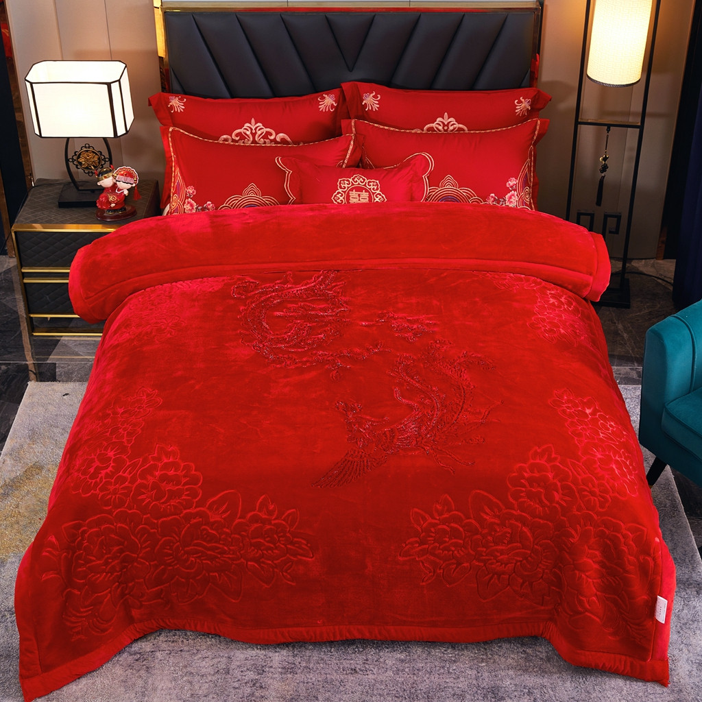 新款婚庆绣花毯619工艺毯大红-龙凤/9斤