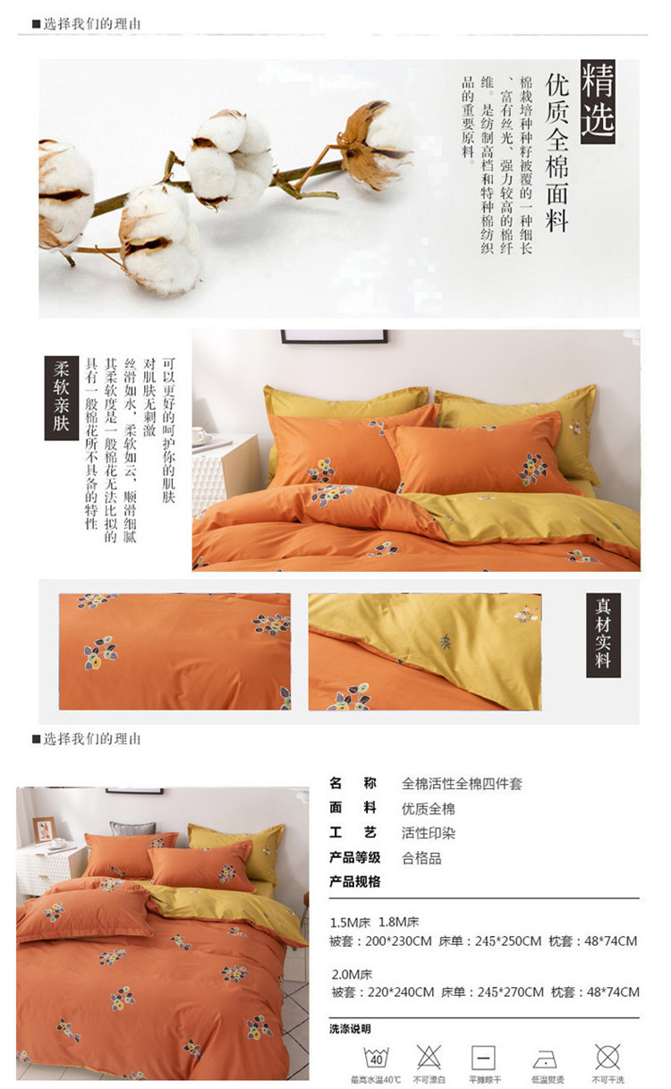 商品名称:星期三 2020年8月新款全棉13372四件套(加老板微信有会员价) 小果叶-桔