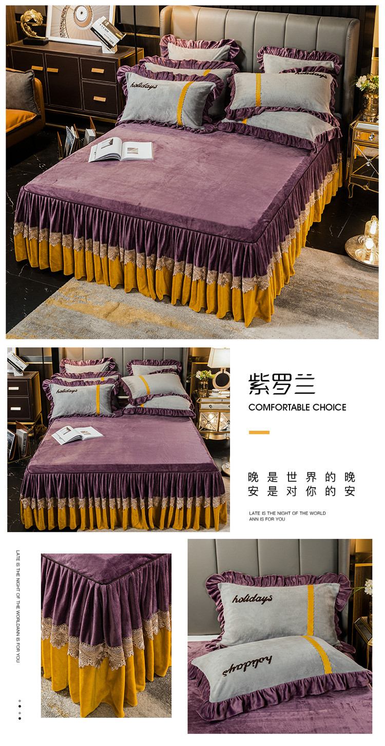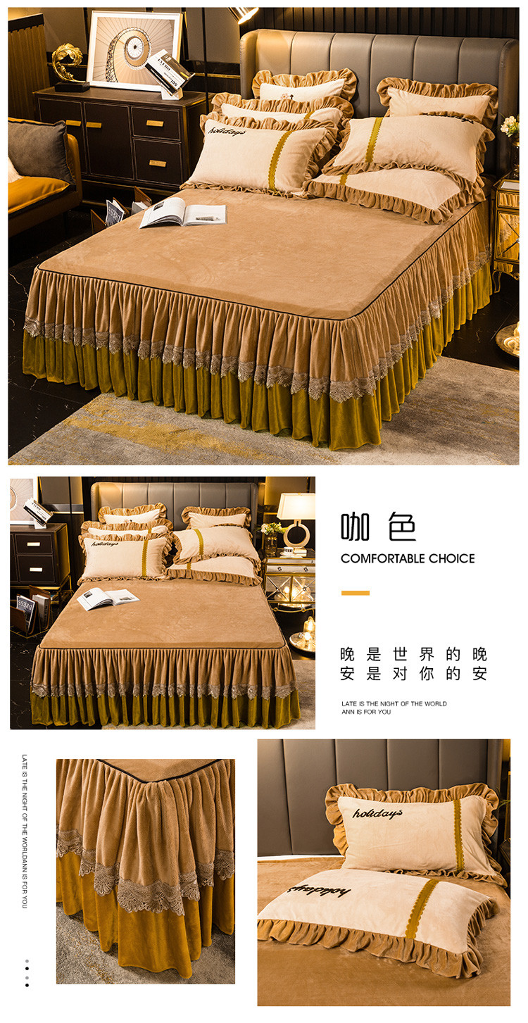 商品名称:(总)兴美佳 新款牛奶绒带蕾丝边床裙四件套 自由风