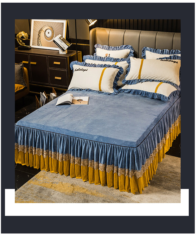 (总)兴美佳 新款牛奶绒带蕾丝边床裙四件套 自由风
