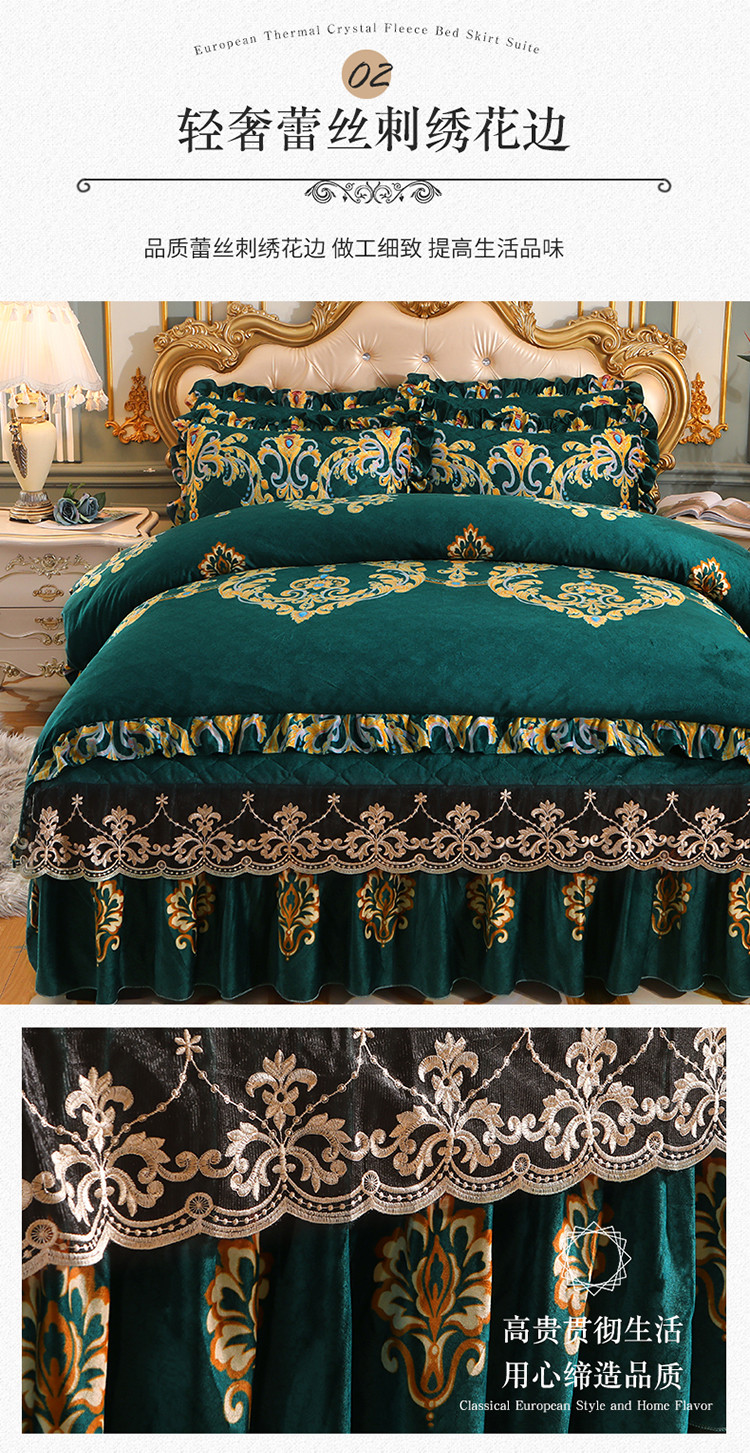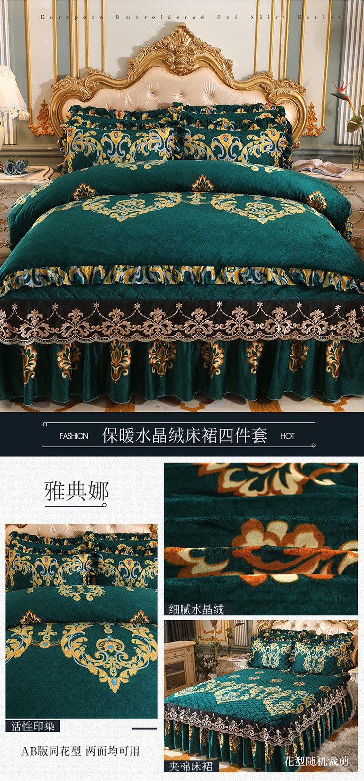 当前位置: 91家纺网 > 商品网购 > 床品套件 > 四件套 > 水晶绒四件套 > 宜凡家纺 2021新款夹棉水晶绒床裙四件套 雅典娜