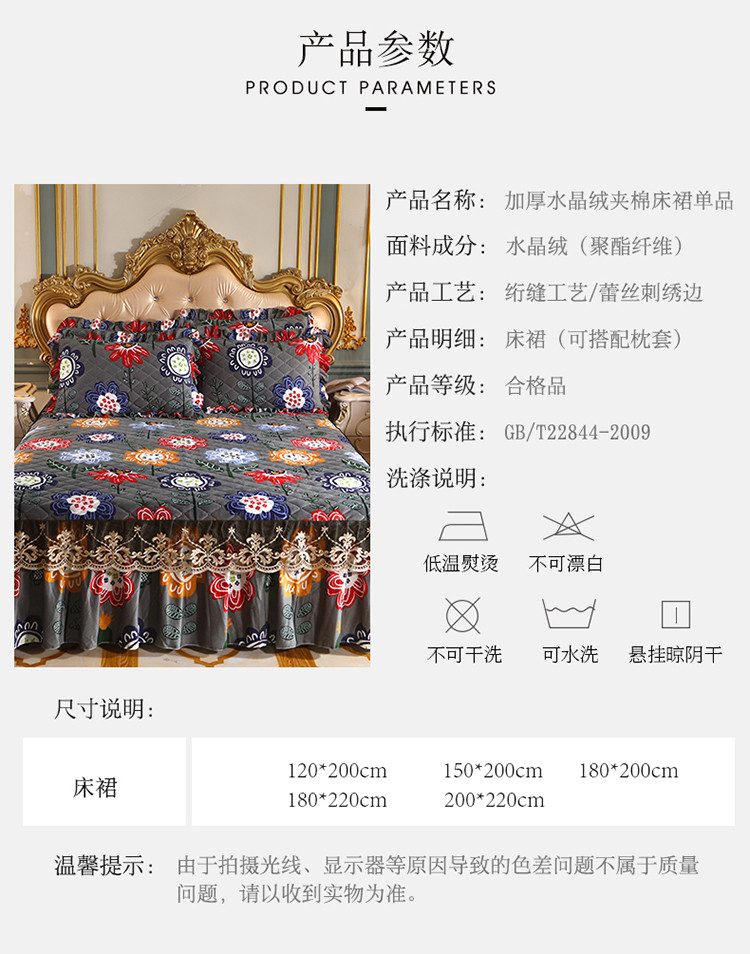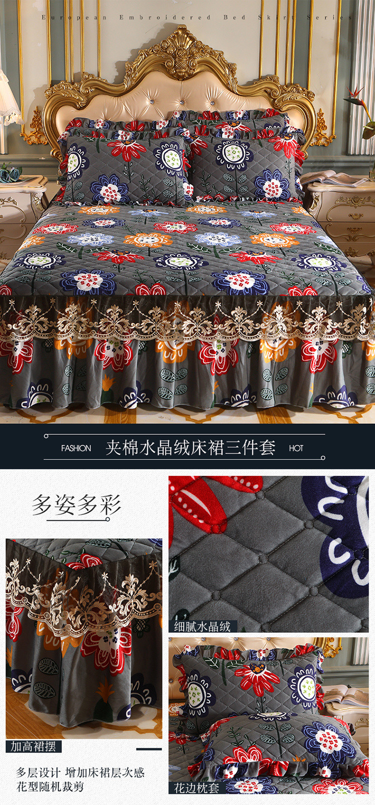 商品名称:宜凡家纺 2021新款夹棉水晶绒单品床裙 多姿多彩