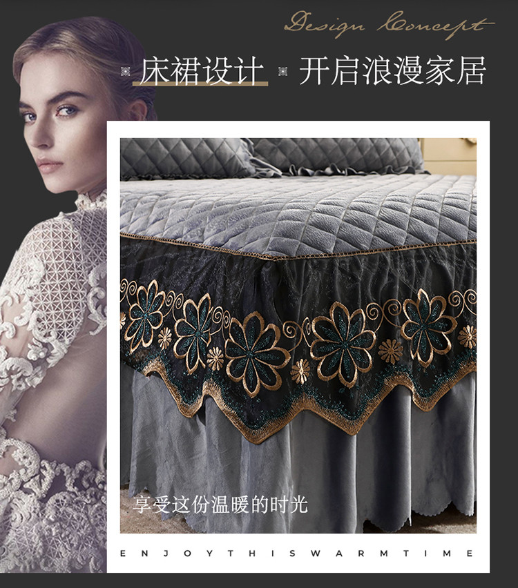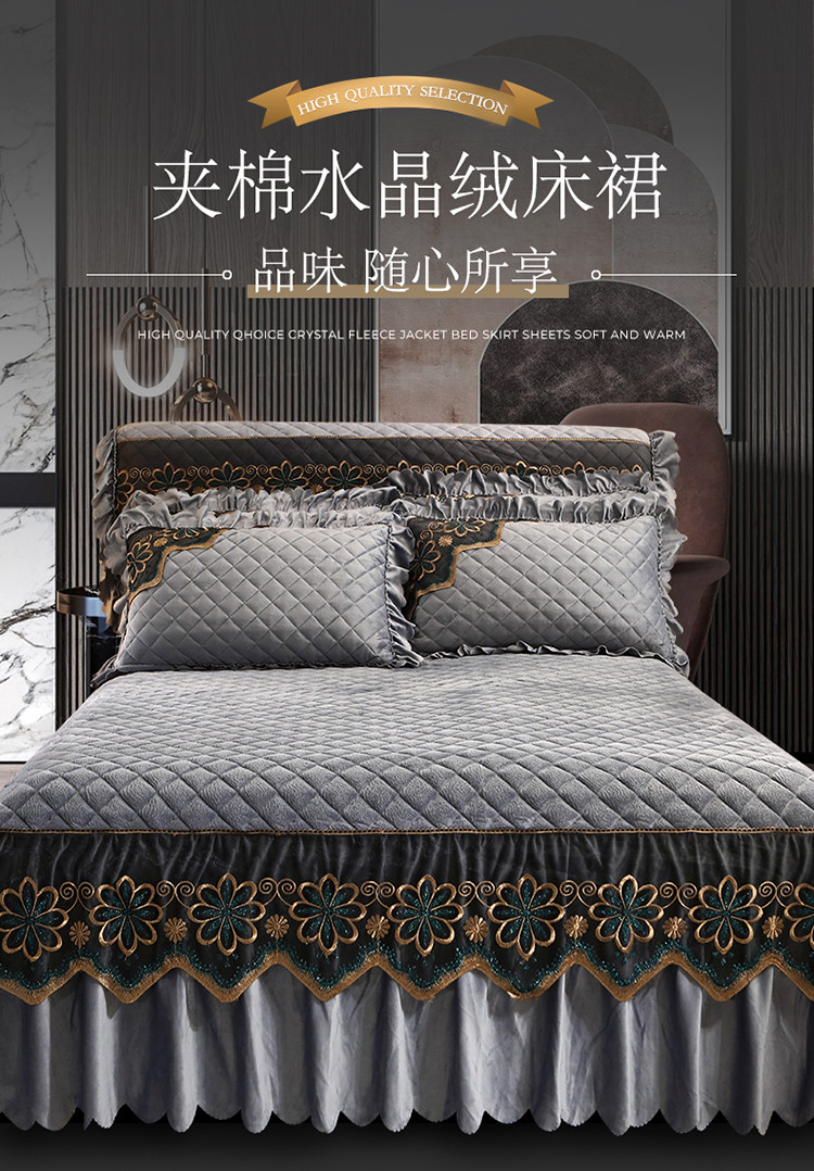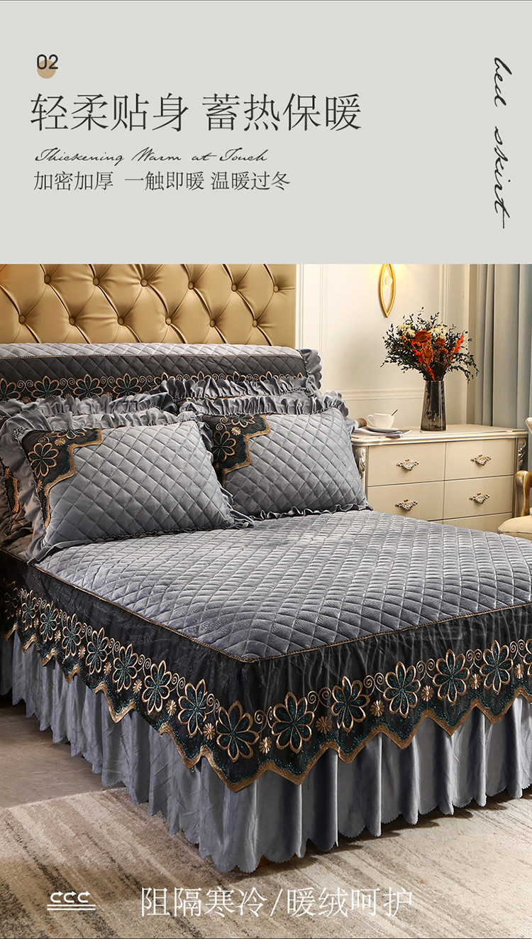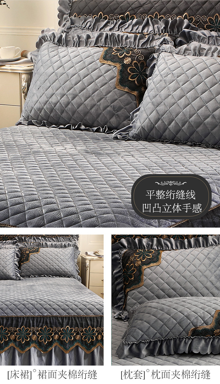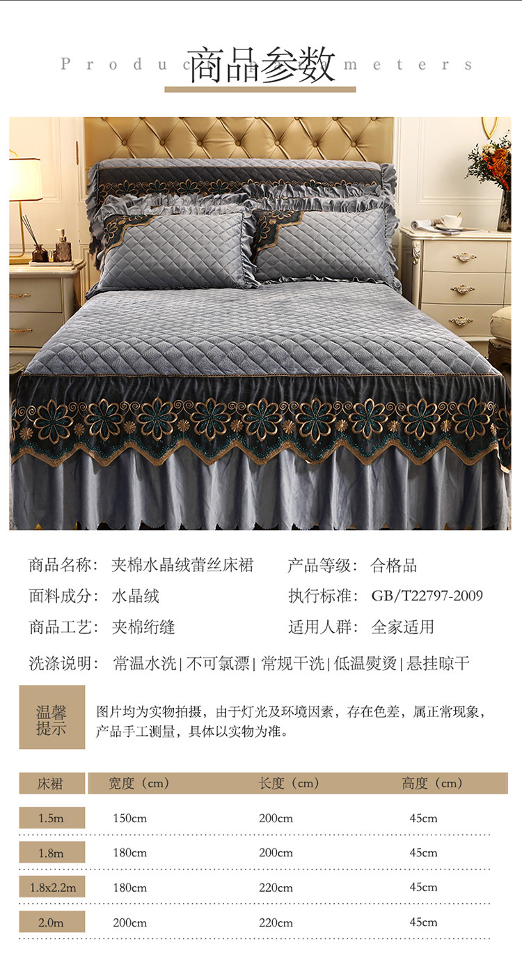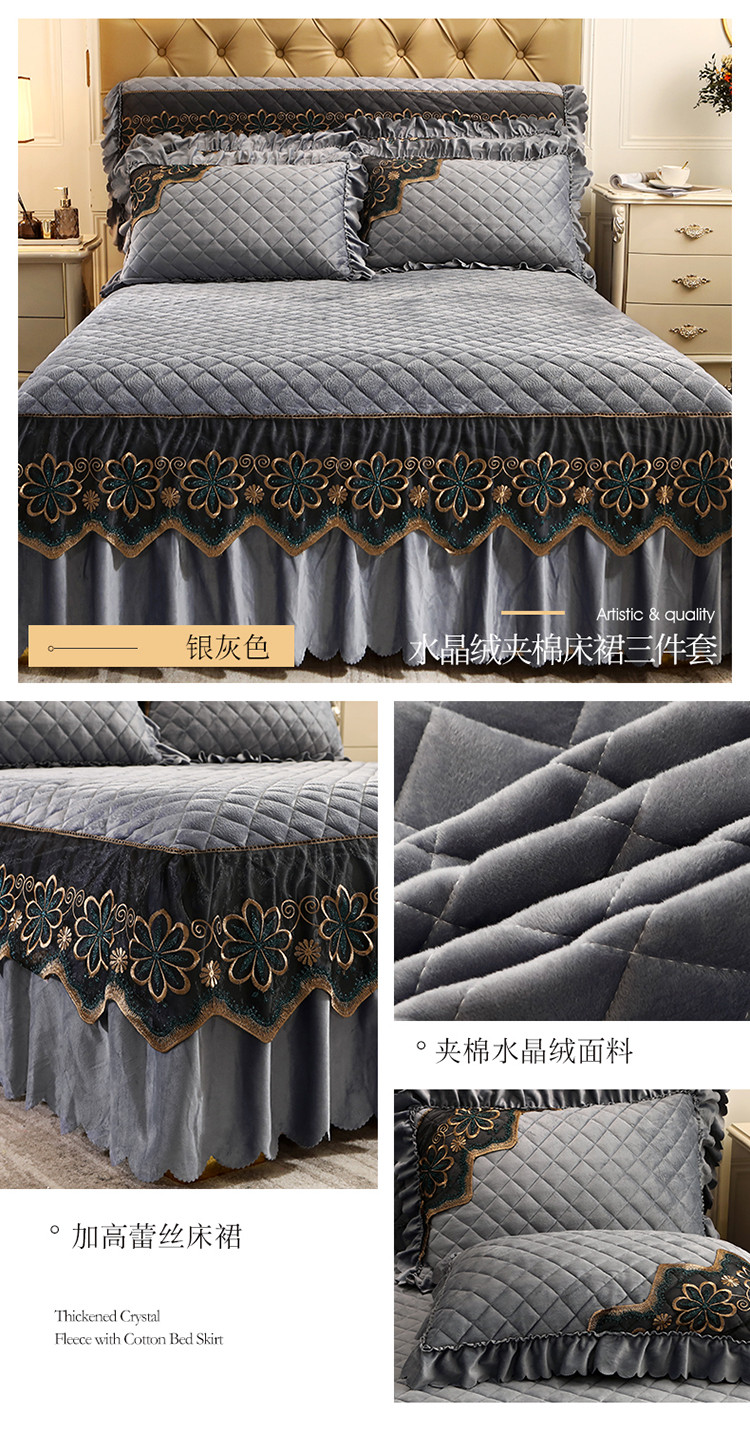 商品名称:情恒 2025新款水晶绒皇家豪庭单床裙 银灰色
