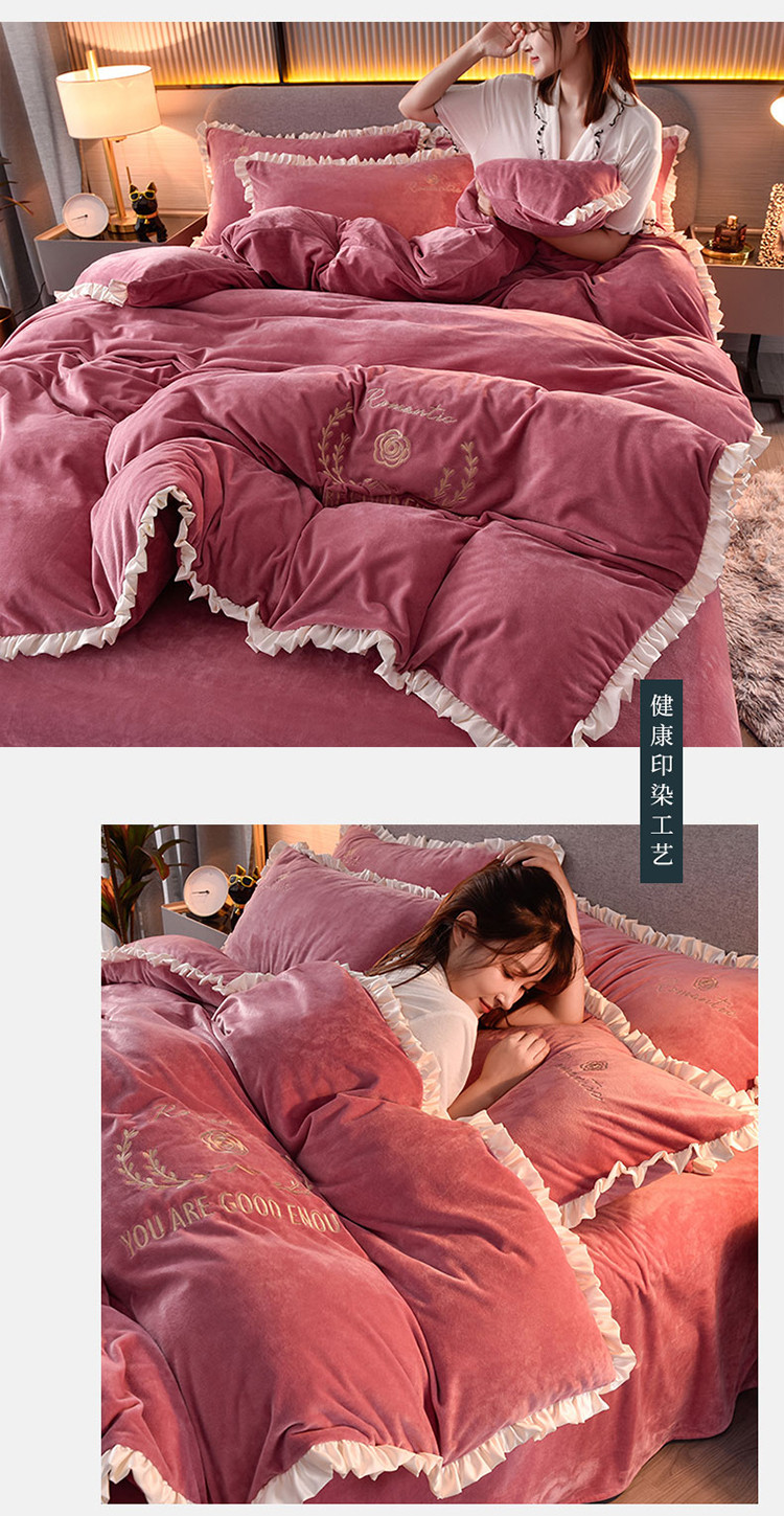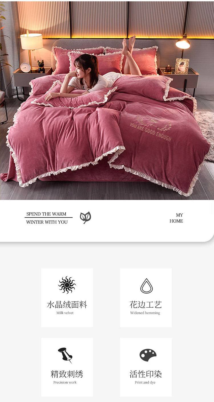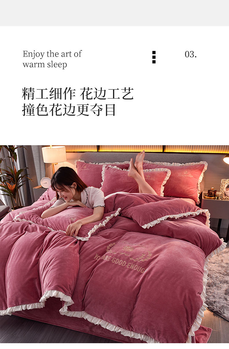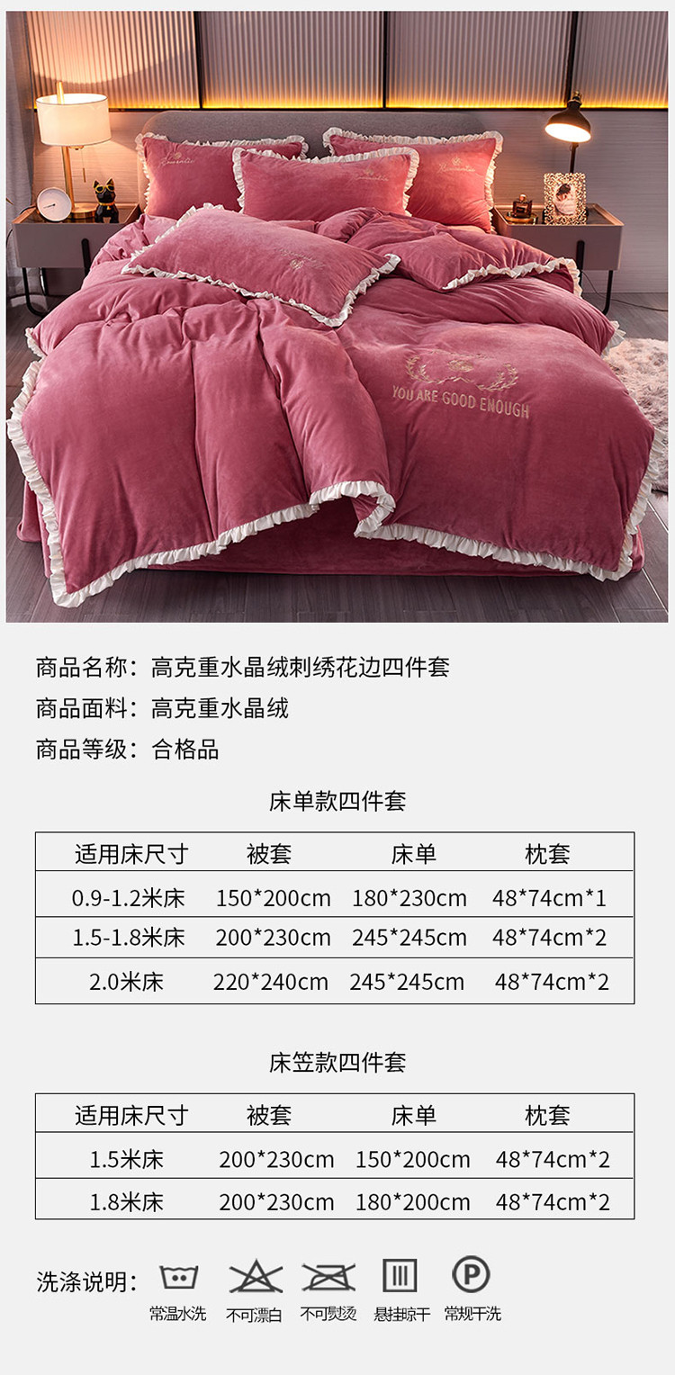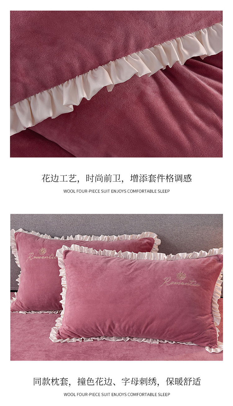 商品名称:米奈2020款朵拉高克重水晶绒木耳边系列四件套 豆沙色+白边