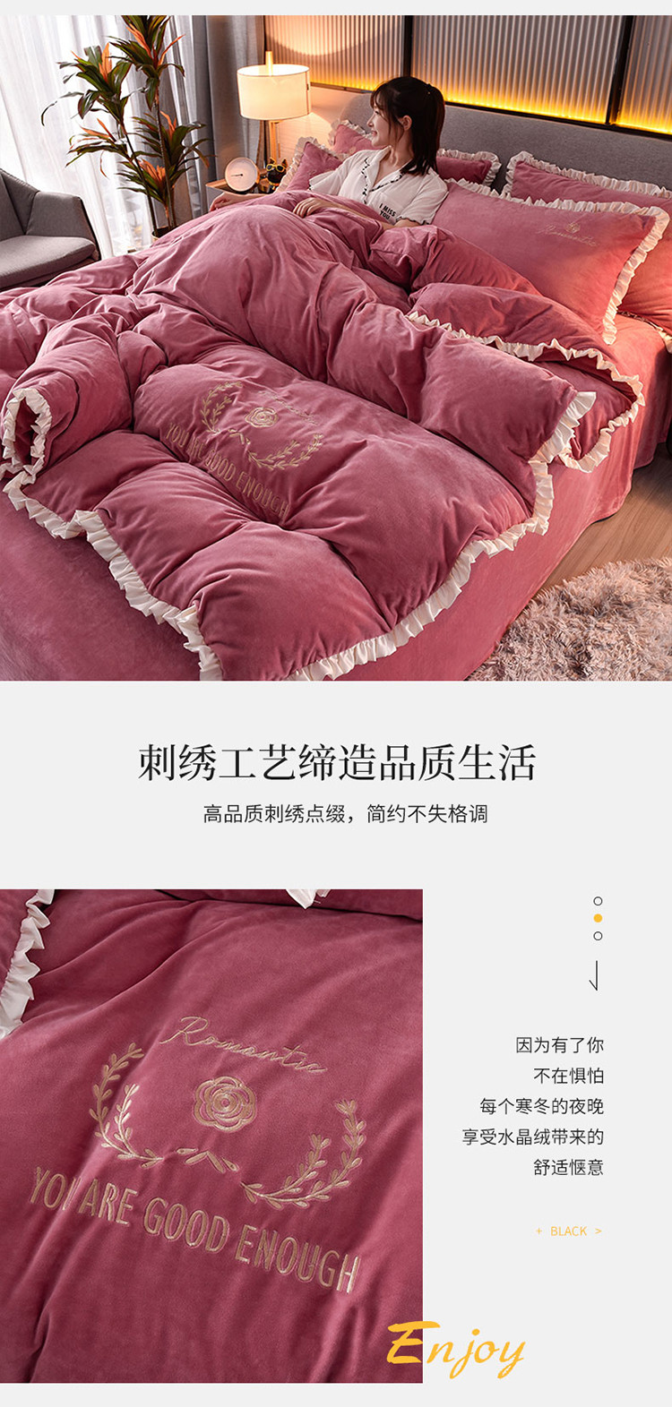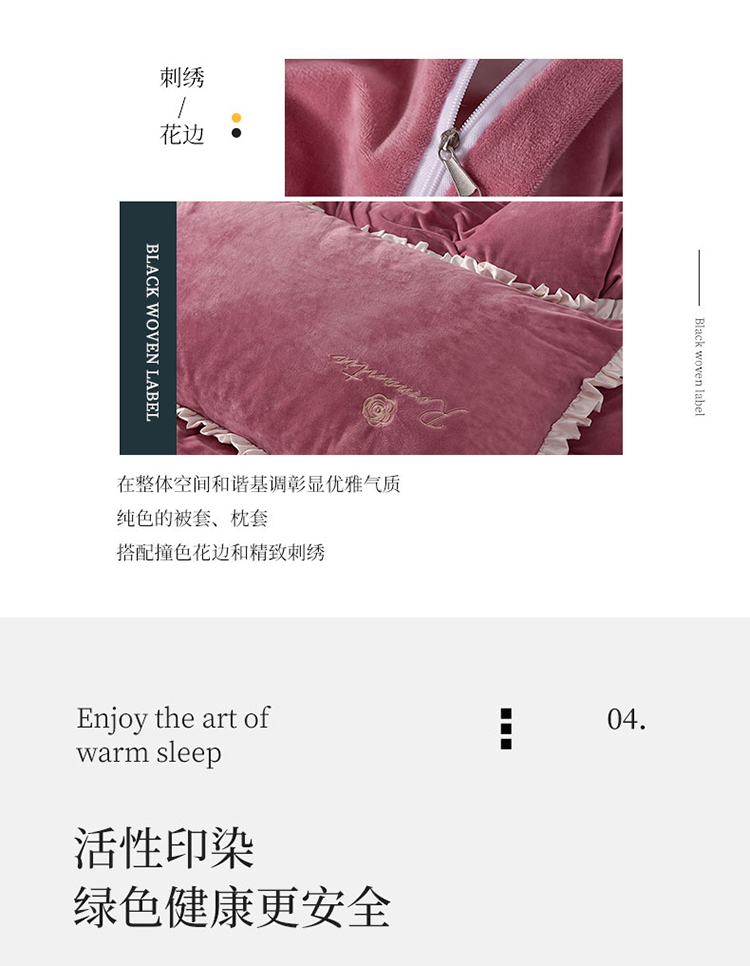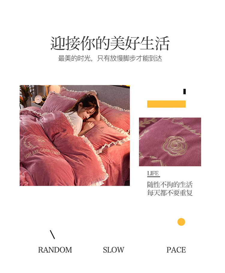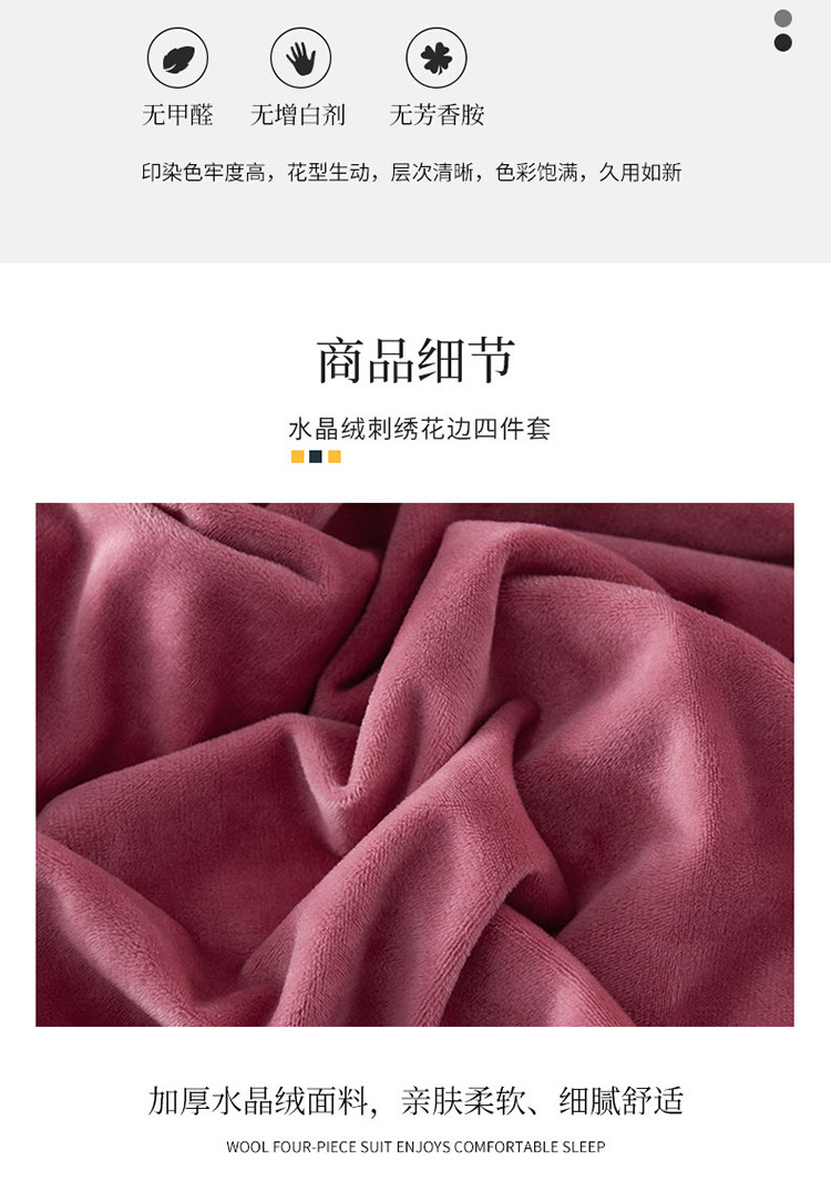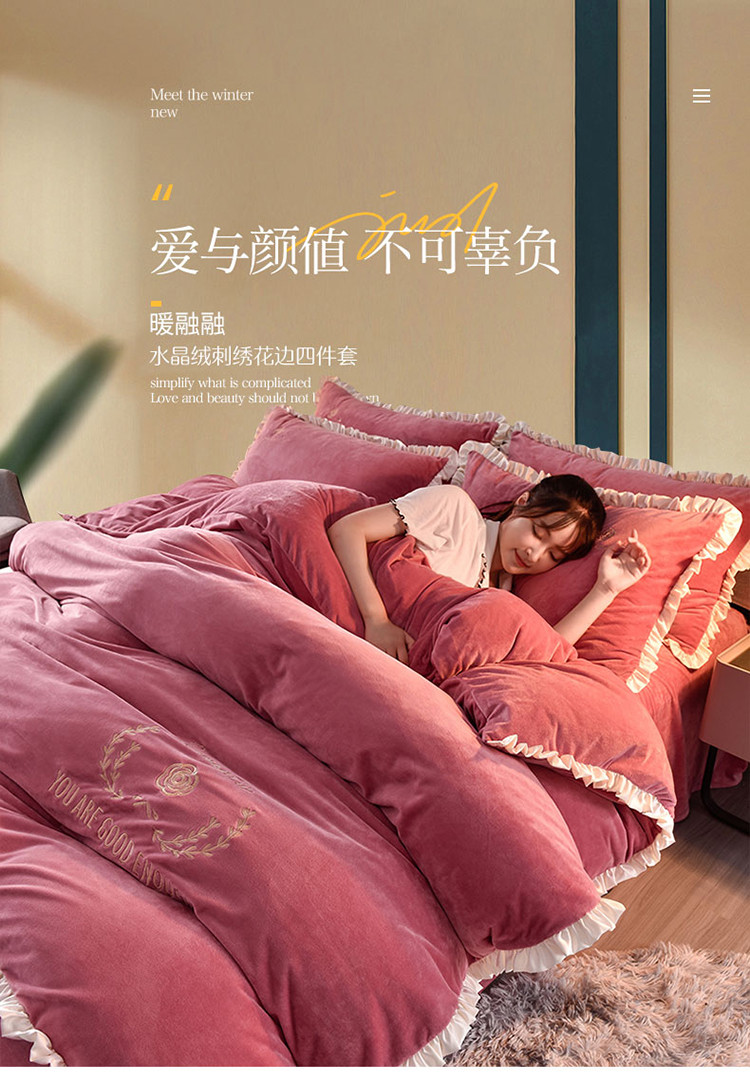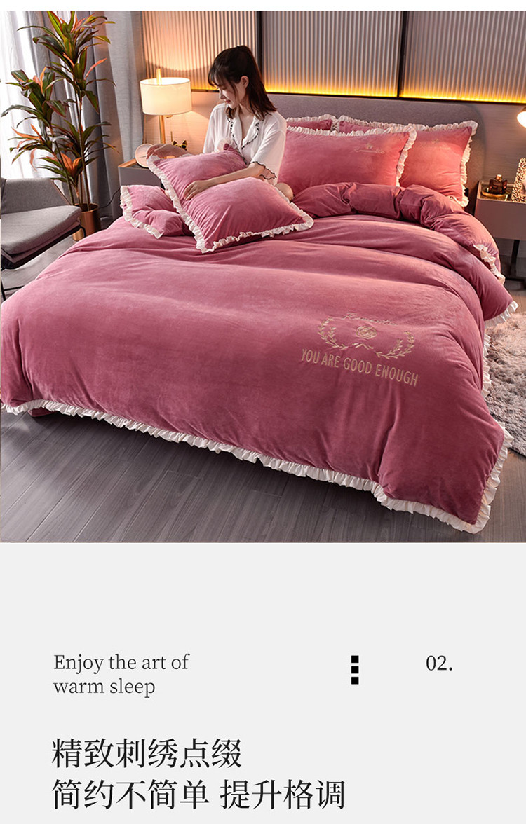 商品名称:米奈2020款朵拉高克重水晶绒木耳边系列四件套 豆沙色+白边