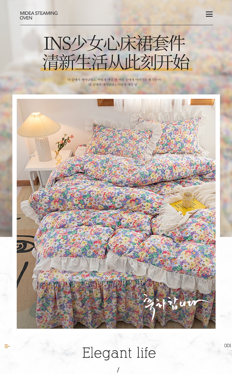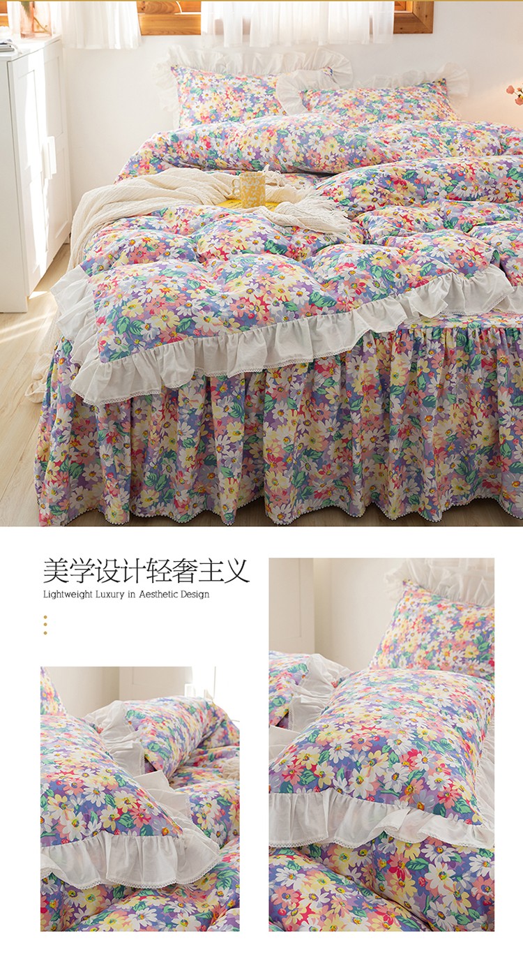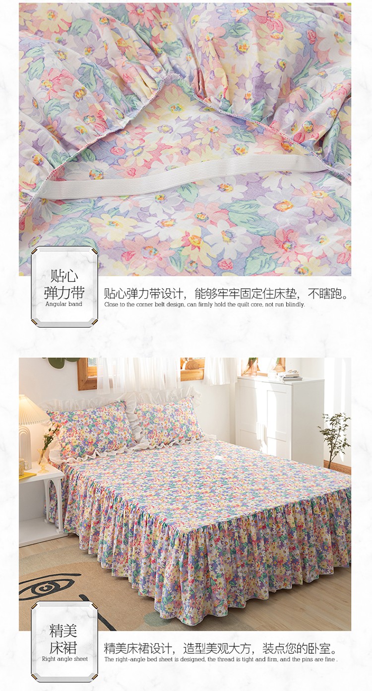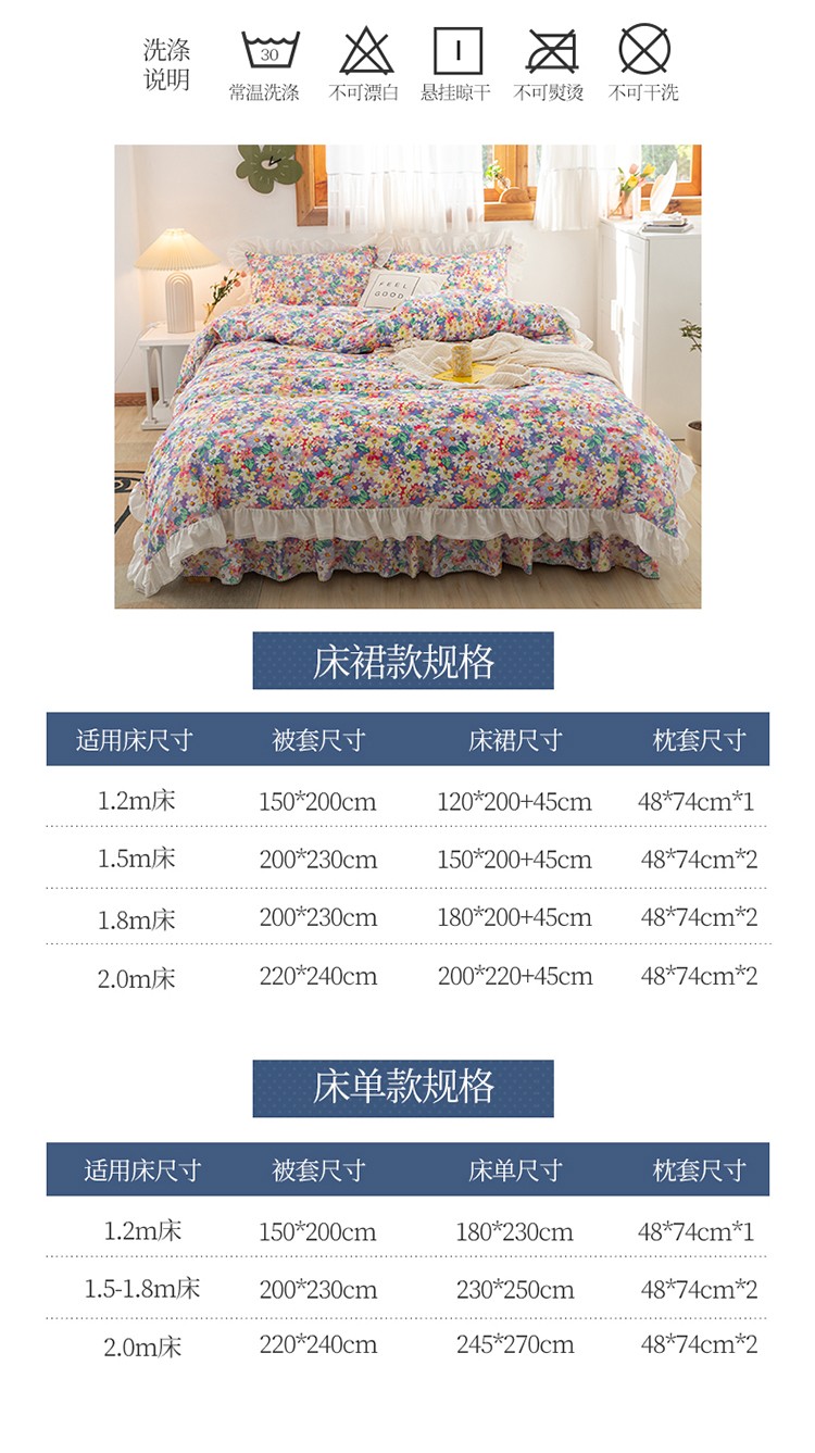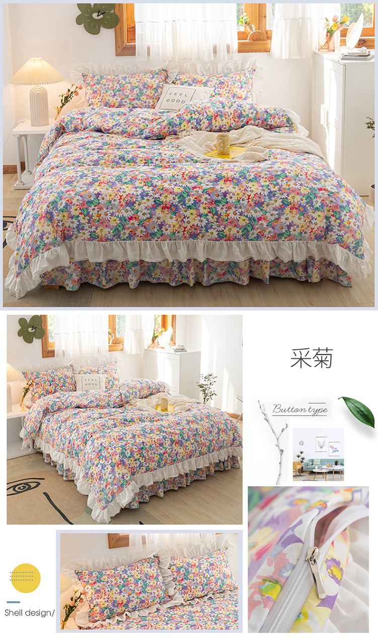 当前位置: 91家纺网 > 商品网购 > 床品套件 > 四件套 > 全棉普通四件套 > 婳庭家居 2021新款韩版全棉床裙四件套 采菊