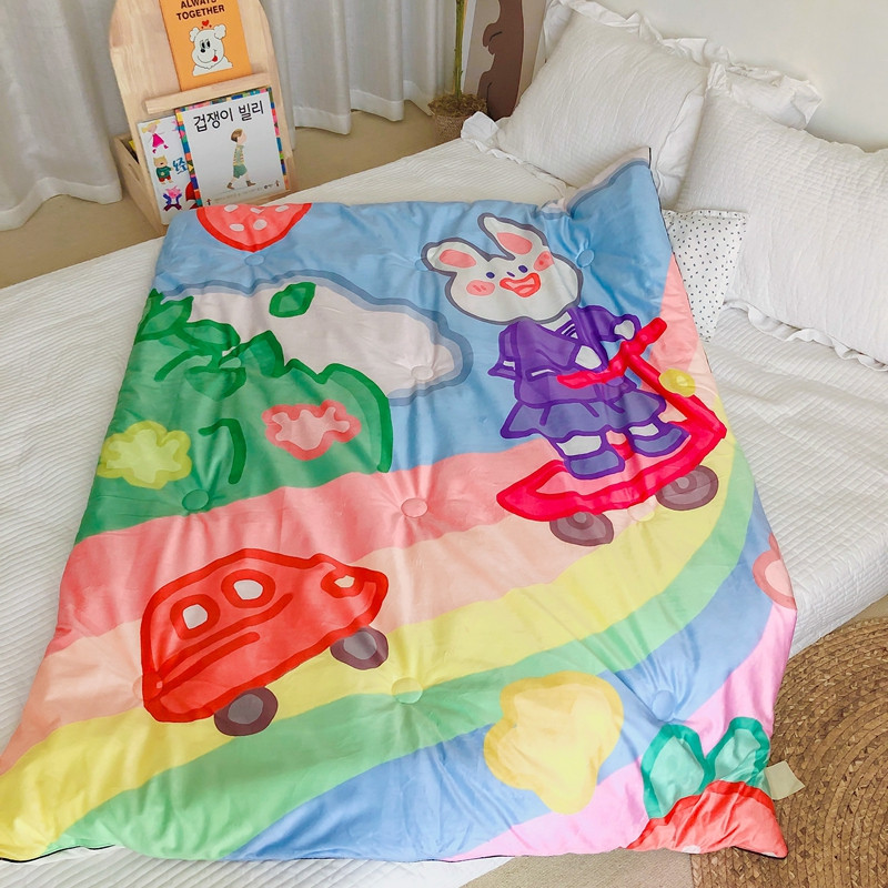 商品名称:星期八 2020新款双面绒豆豆被 彩虹兔