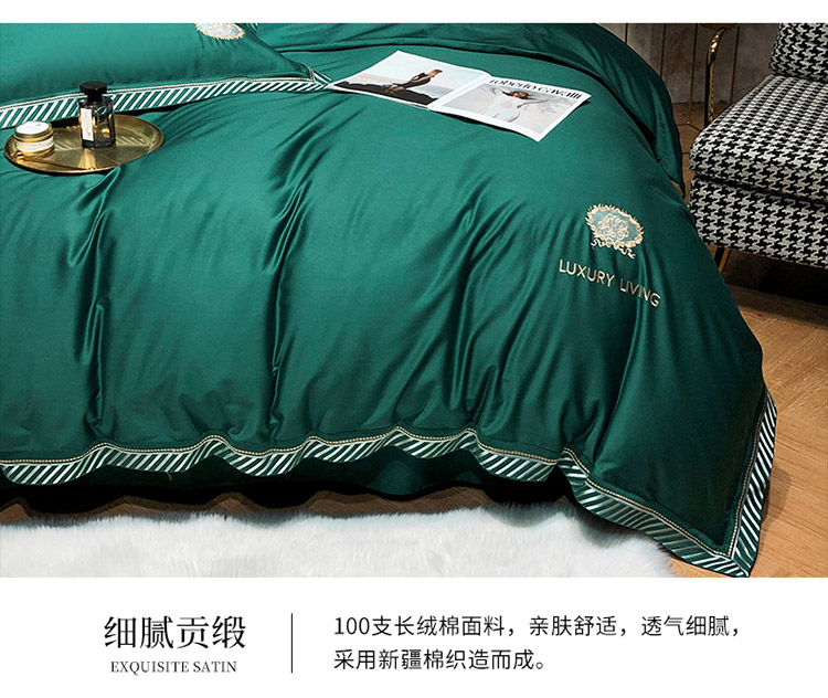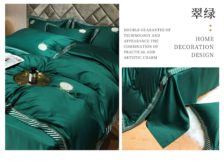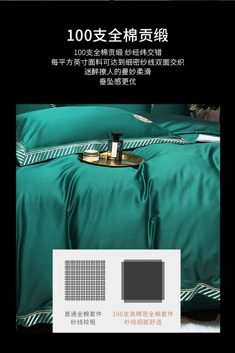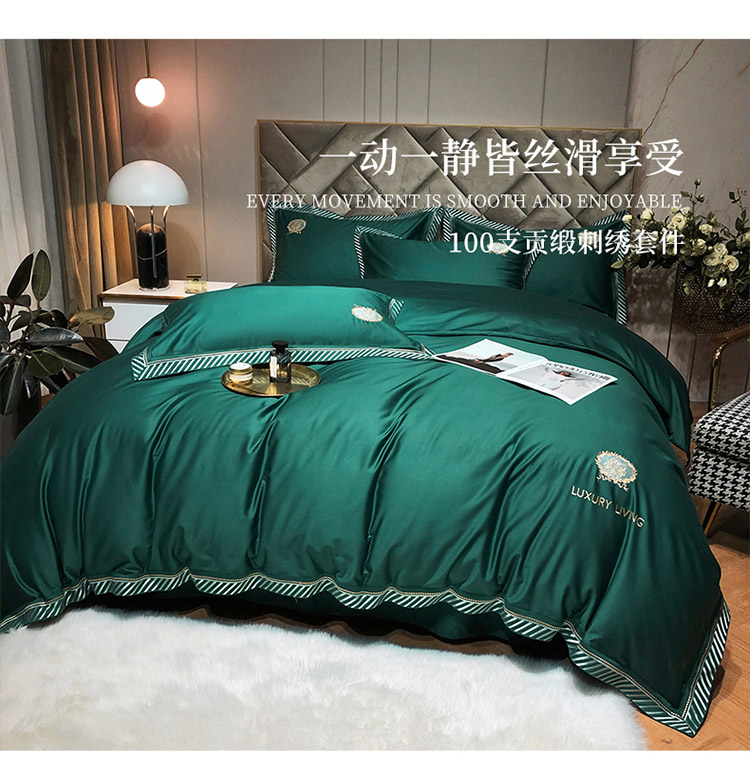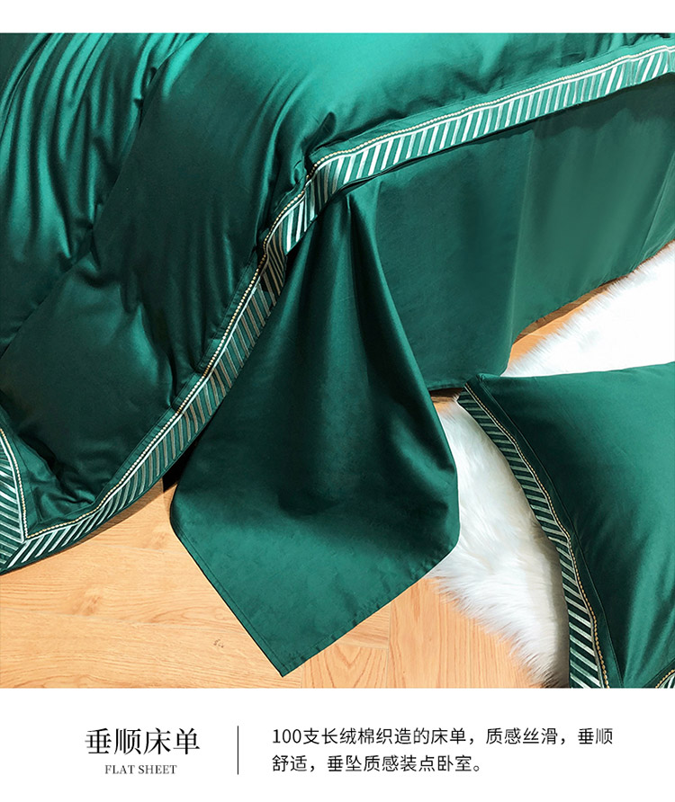 商品名称:爱缦 2021新款100s长绒棉刺绣四件套 翠绿