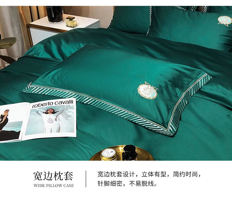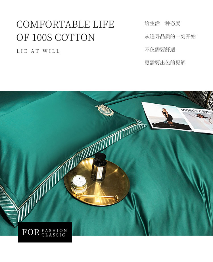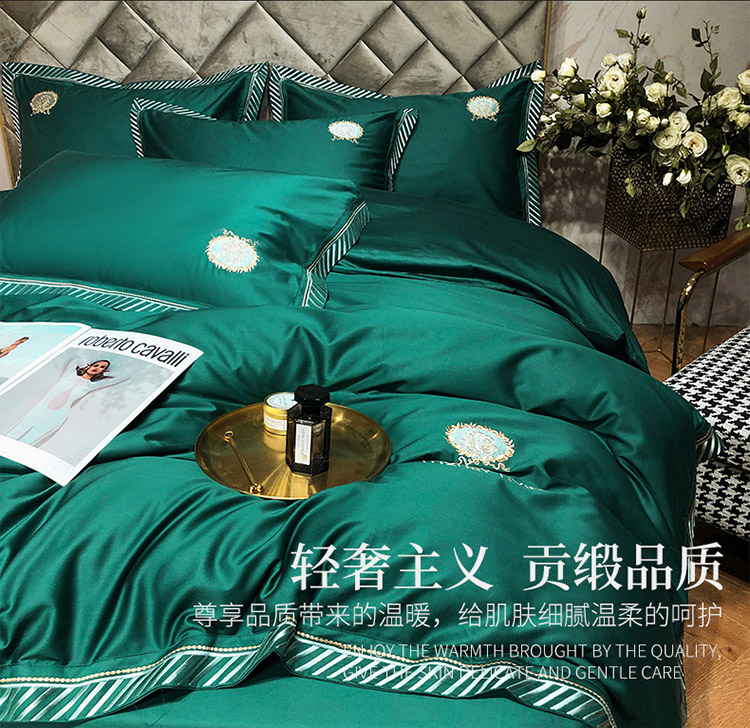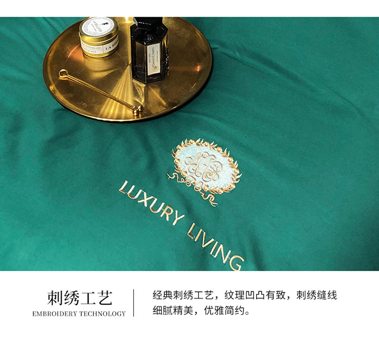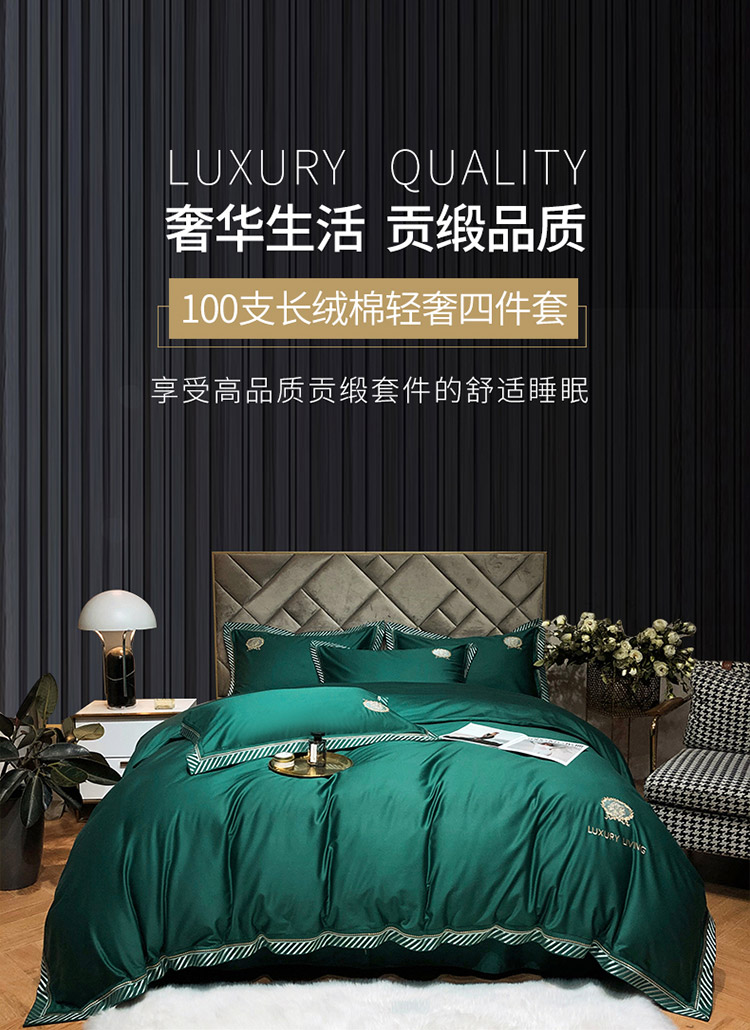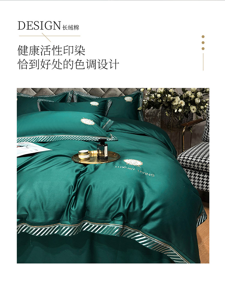 商品名称:爱缦 2021新款100s长绒棉刺绣四件套 翠绿