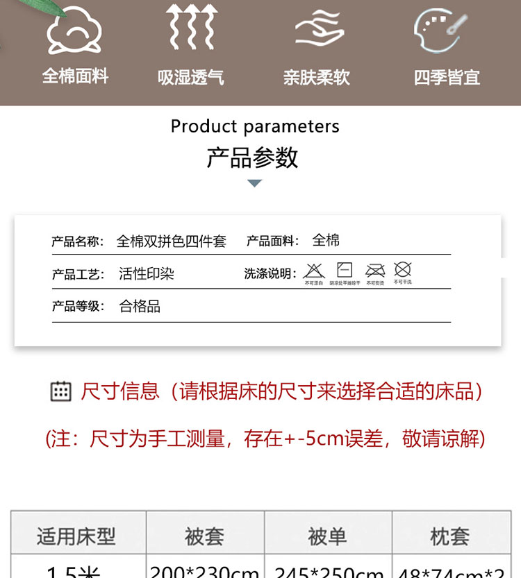 商品名称:(总)优宜家纺织 2023新款纯棉纯色双拼四件套