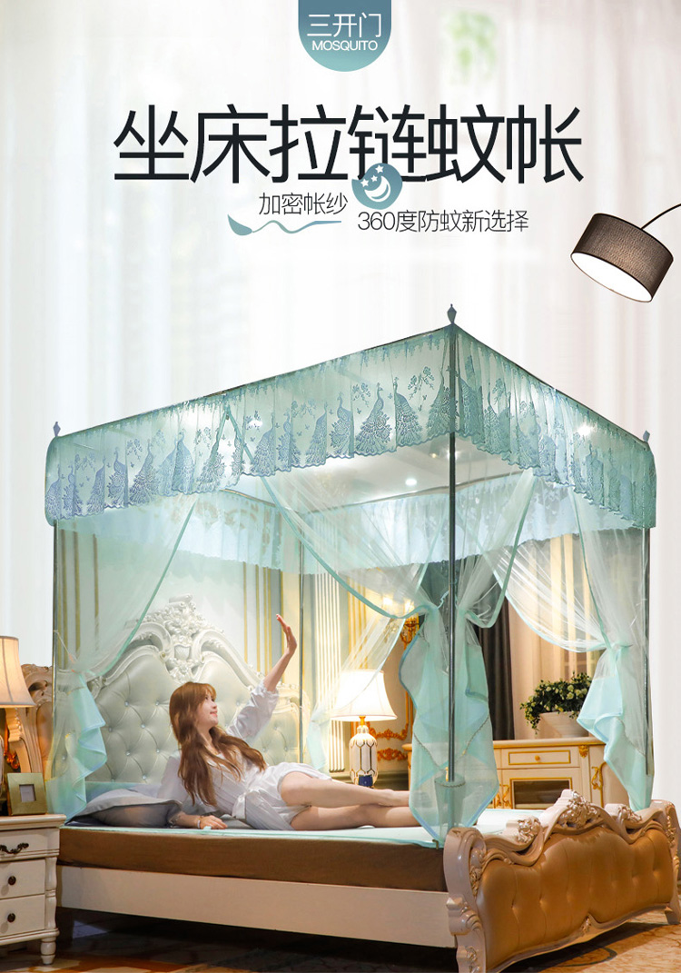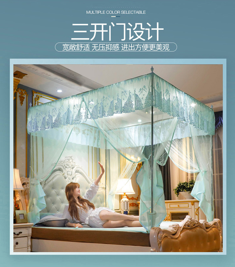 迷仙巢2022新款落地三开门蚊帐C18一生有你系列 兰色,兰色
