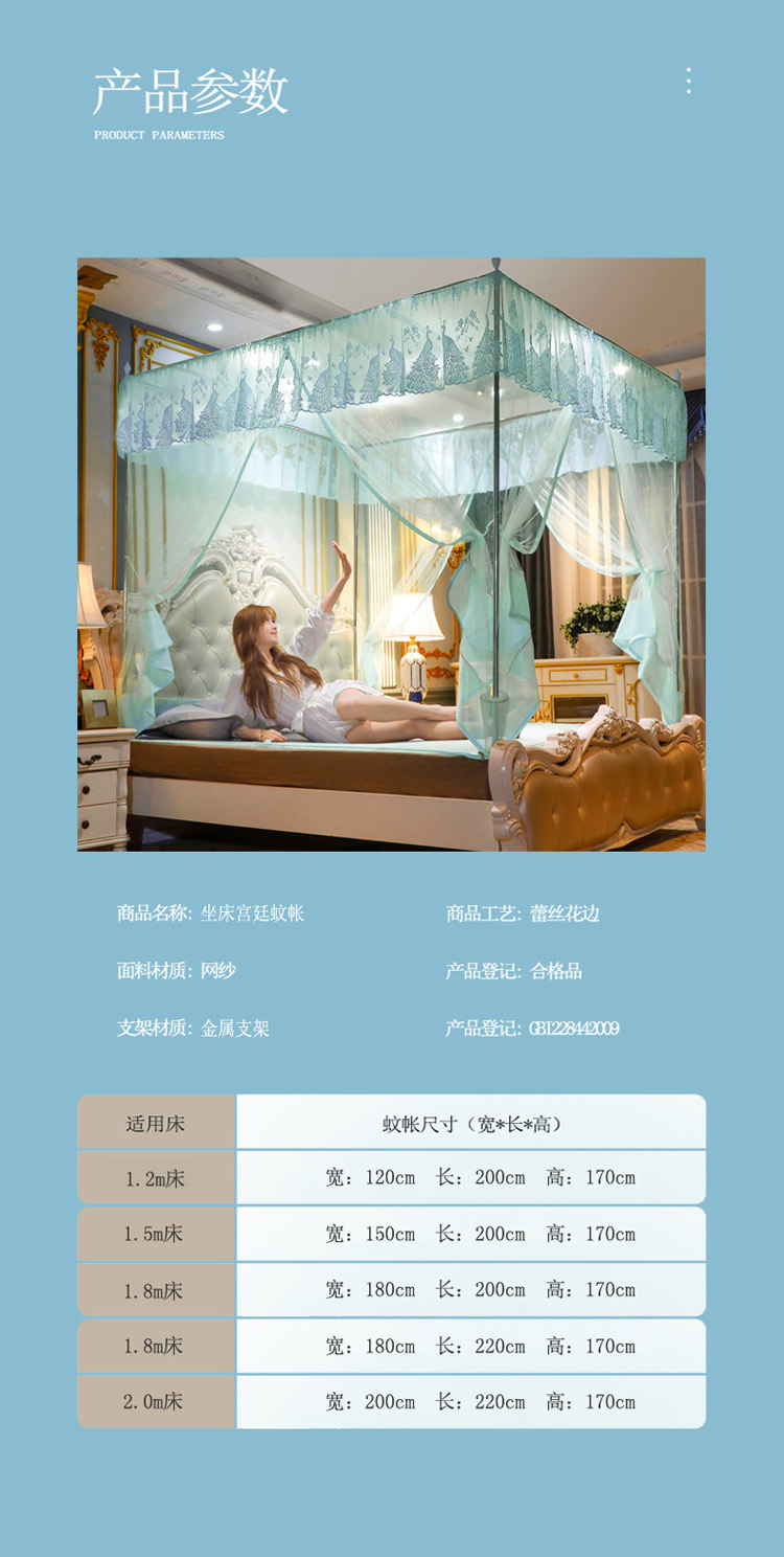 商品名称:(总)迷仙巢家纺 2022新款坐床宫廷蚊帐-B10孔雀公主
