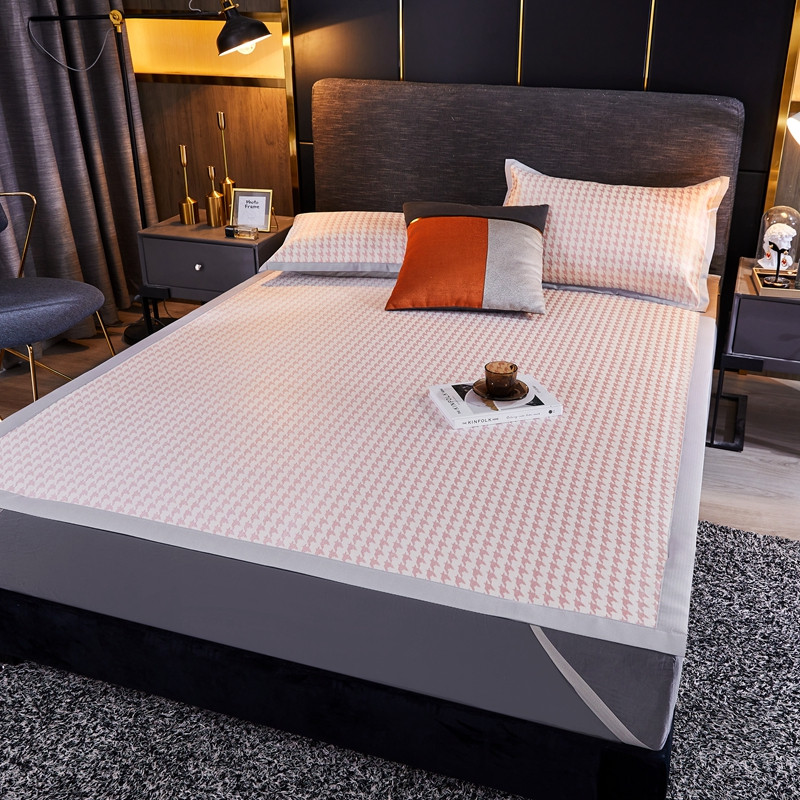 摩妮卡 2025新款800D提花冰丝凉席凉席千鸟格系列 千鸟格-粉