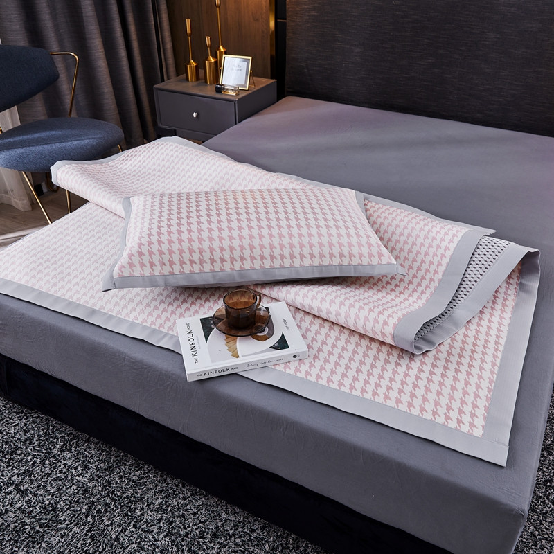 商品名称:摩妮卡 2025新款800D提花冰丝凉席凉席千鸟格系列 千鸟格-粉