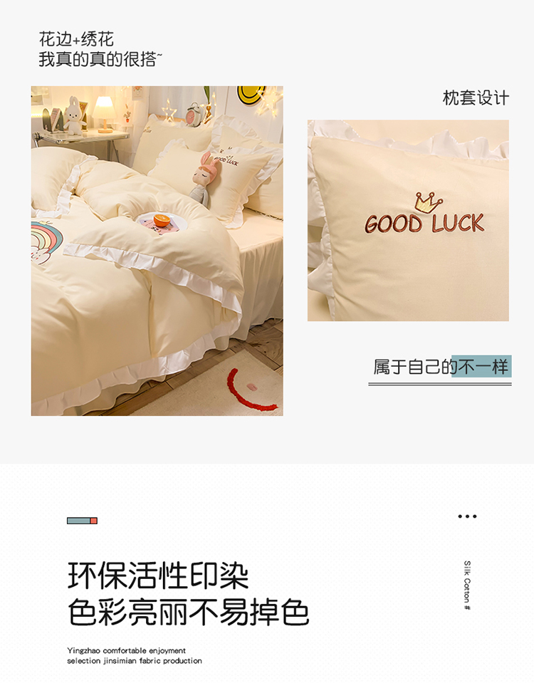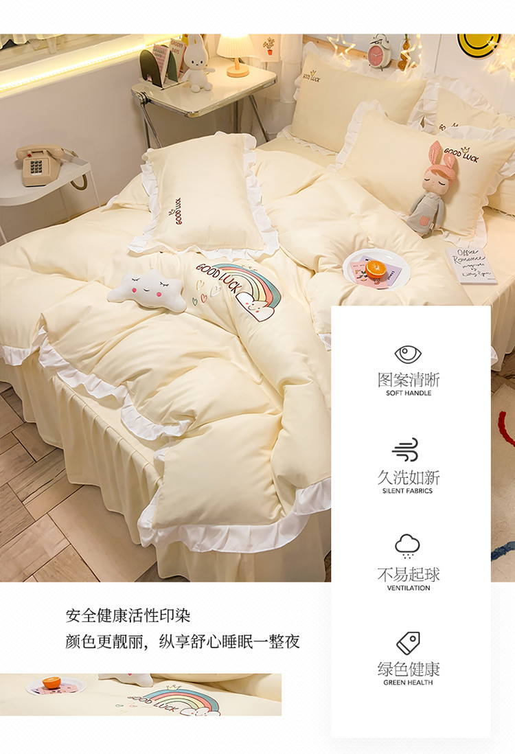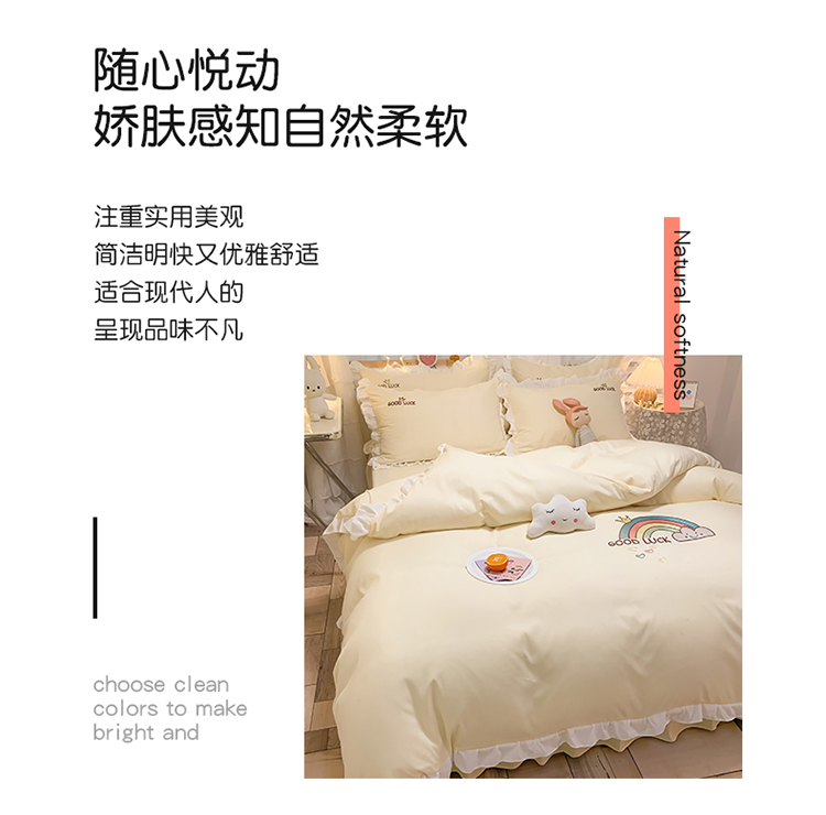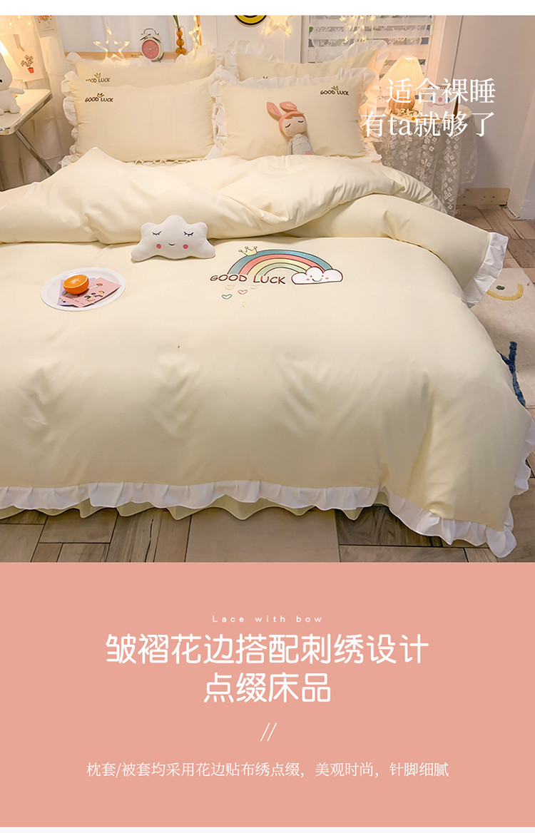 当前位置: 91家纺网 > 商品网购 > 床品套件 > 四件套 > 全棉普通四件套 > 绒兔兔 2021韩版柔肤棉彩虹刺绣四件套 奶白