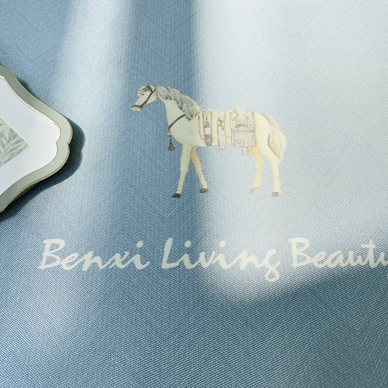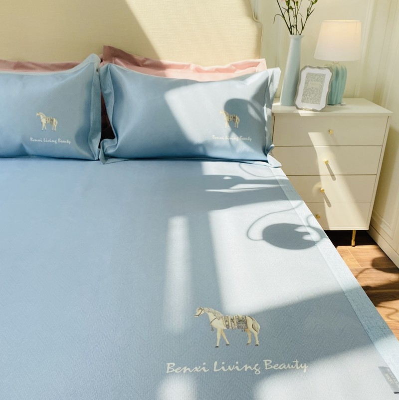 本希家居 2021新款高端可水洗冰丝席数码印花 小马-贵族蓝
