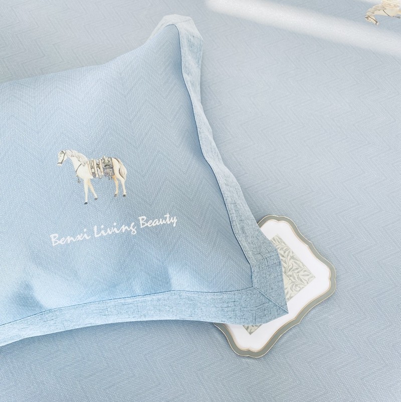 商品名称:本希家居 2021新款高端可水洗冰丝席数码印花 小马-贵族蓝