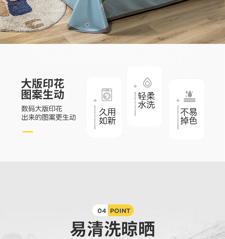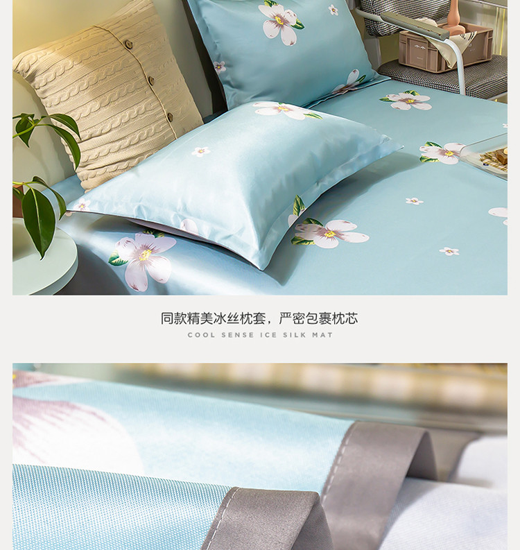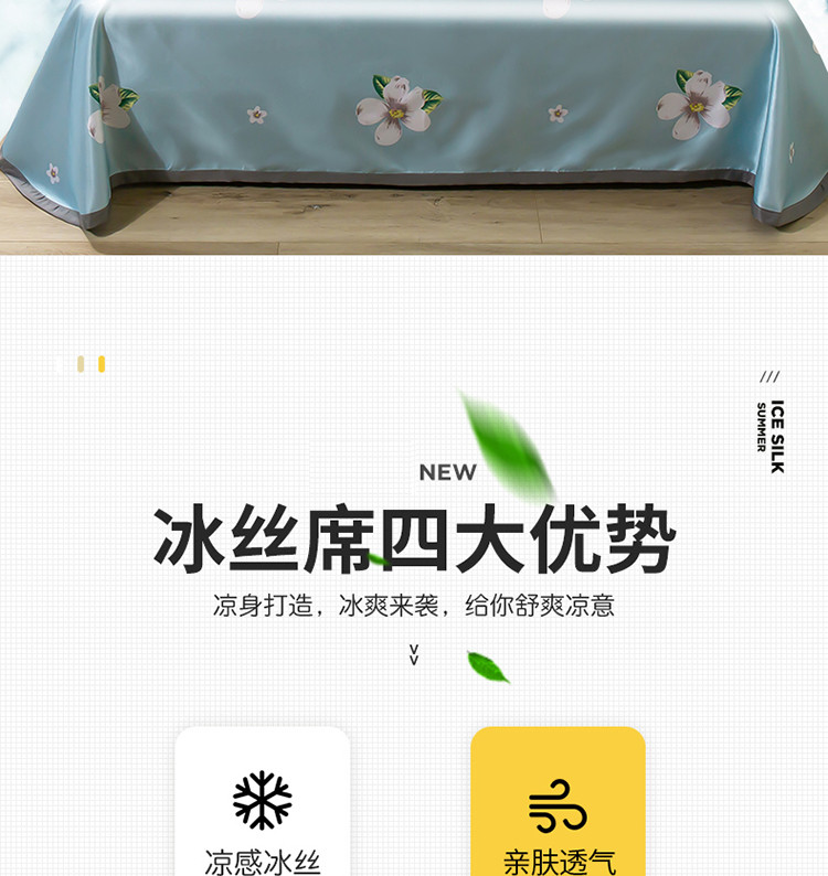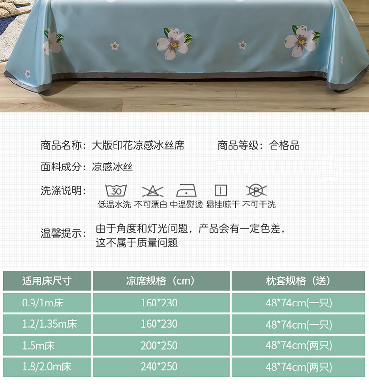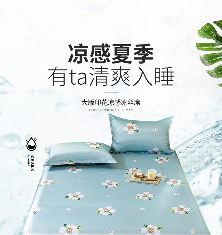 商品名称:琪格格 2022新款大版印花凉感冰丝席三件套 棉朵