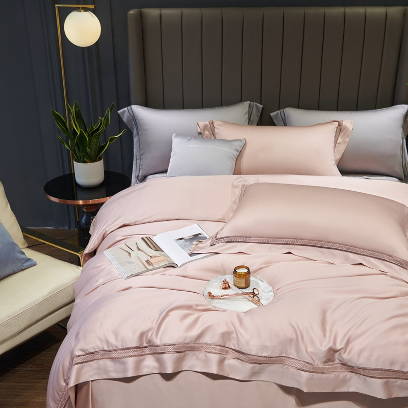 时亿家居 2021新款80天丝瑞丽镂空四件套 瑞丽海盐粉