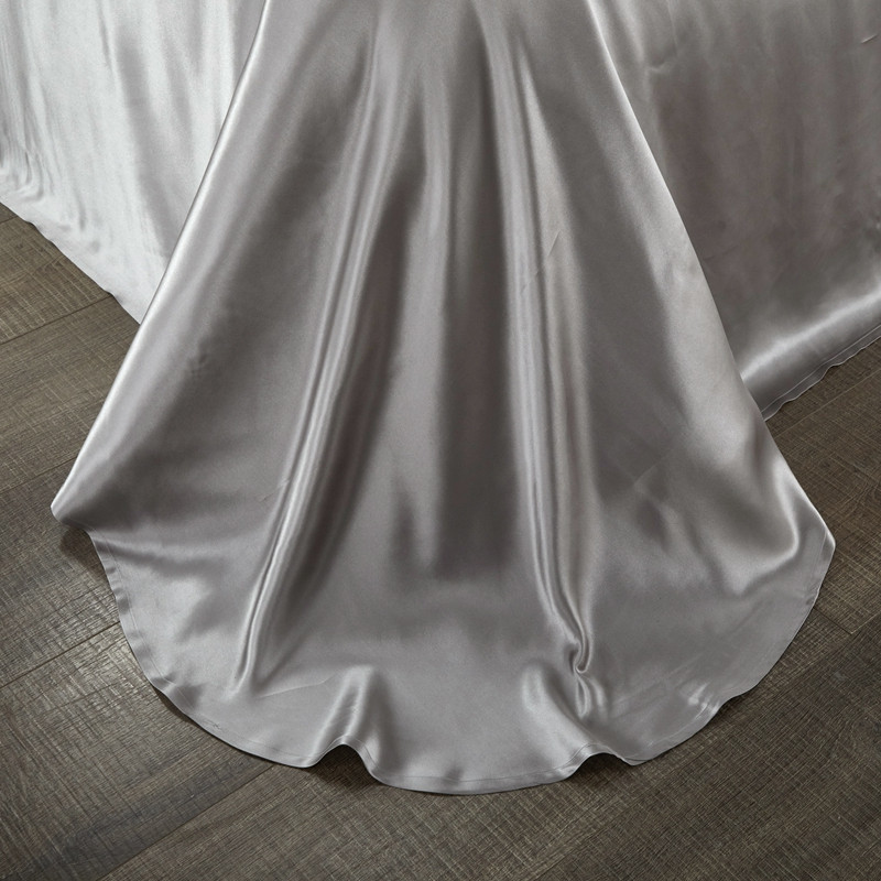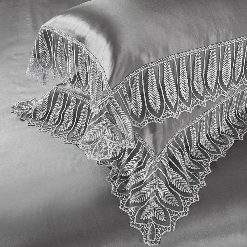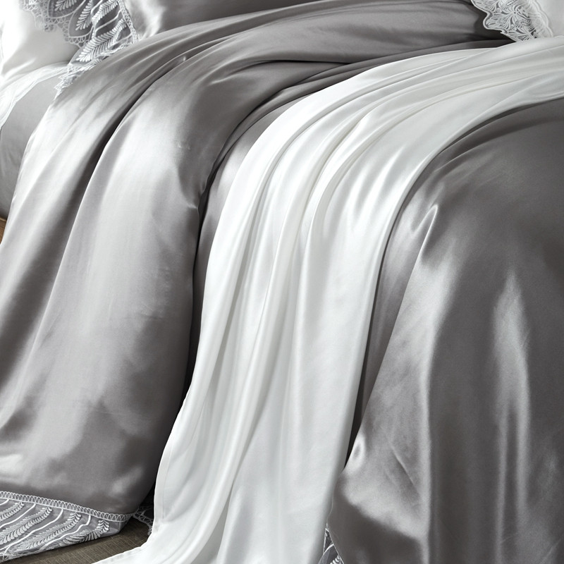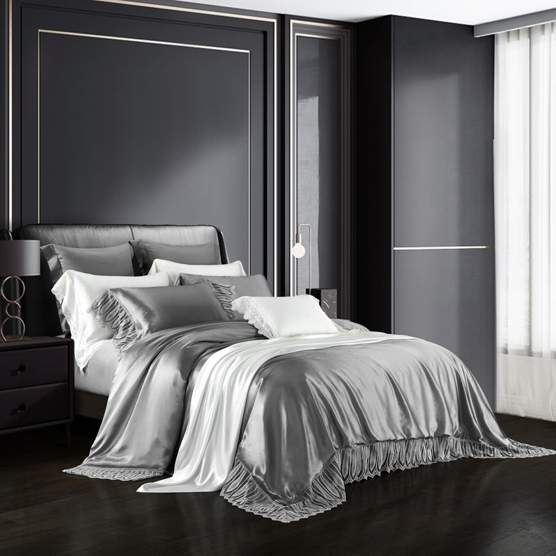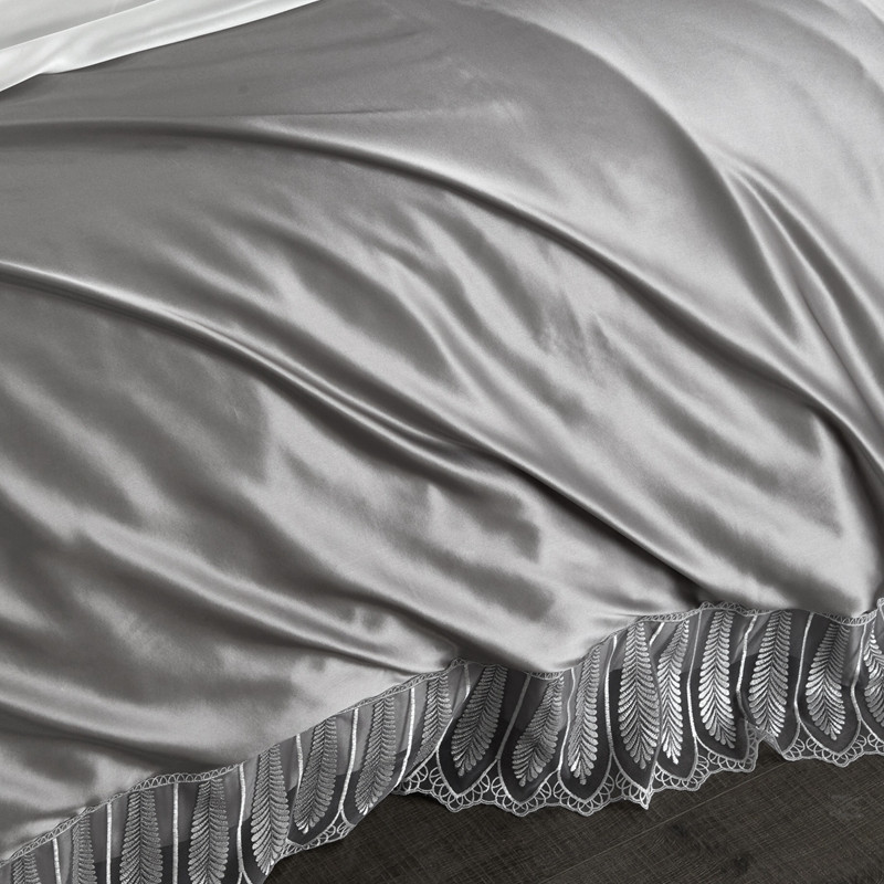 雅韵诗真丝馆 2023新款素色真丝四件套 灰蕾丝
