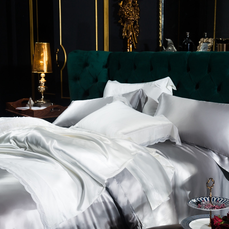 (总)雅韵诗真丝馆 2023新款素色真丝四件套(不退换),灰蕾丝,蕾丝孔雀蓝,素色翡翠绿,素色橄榄绿,素色贵族白,素色孔雀蓝,素色深灰,素色祖母绿,素色魅惑紫,香槟金,银灰,素色樱花粉